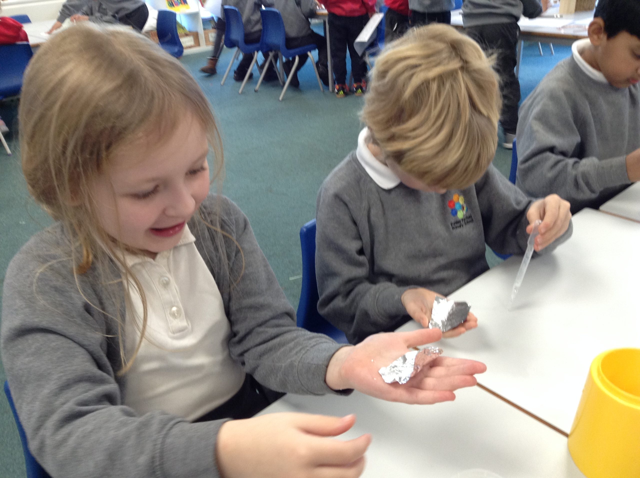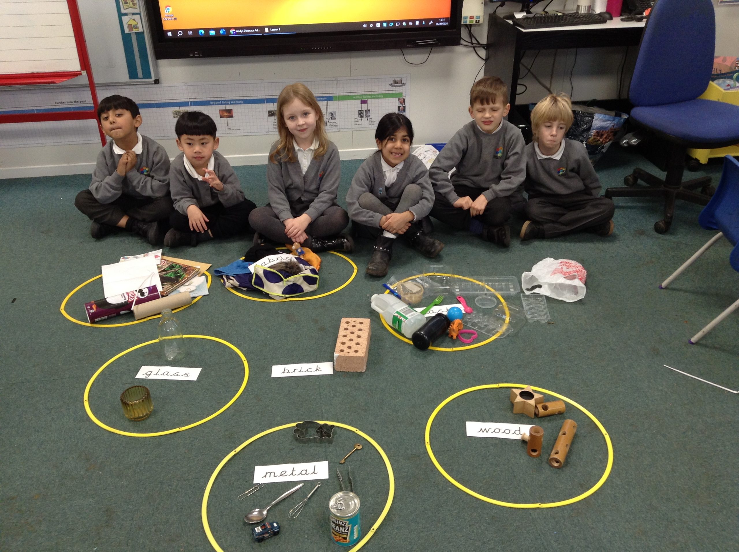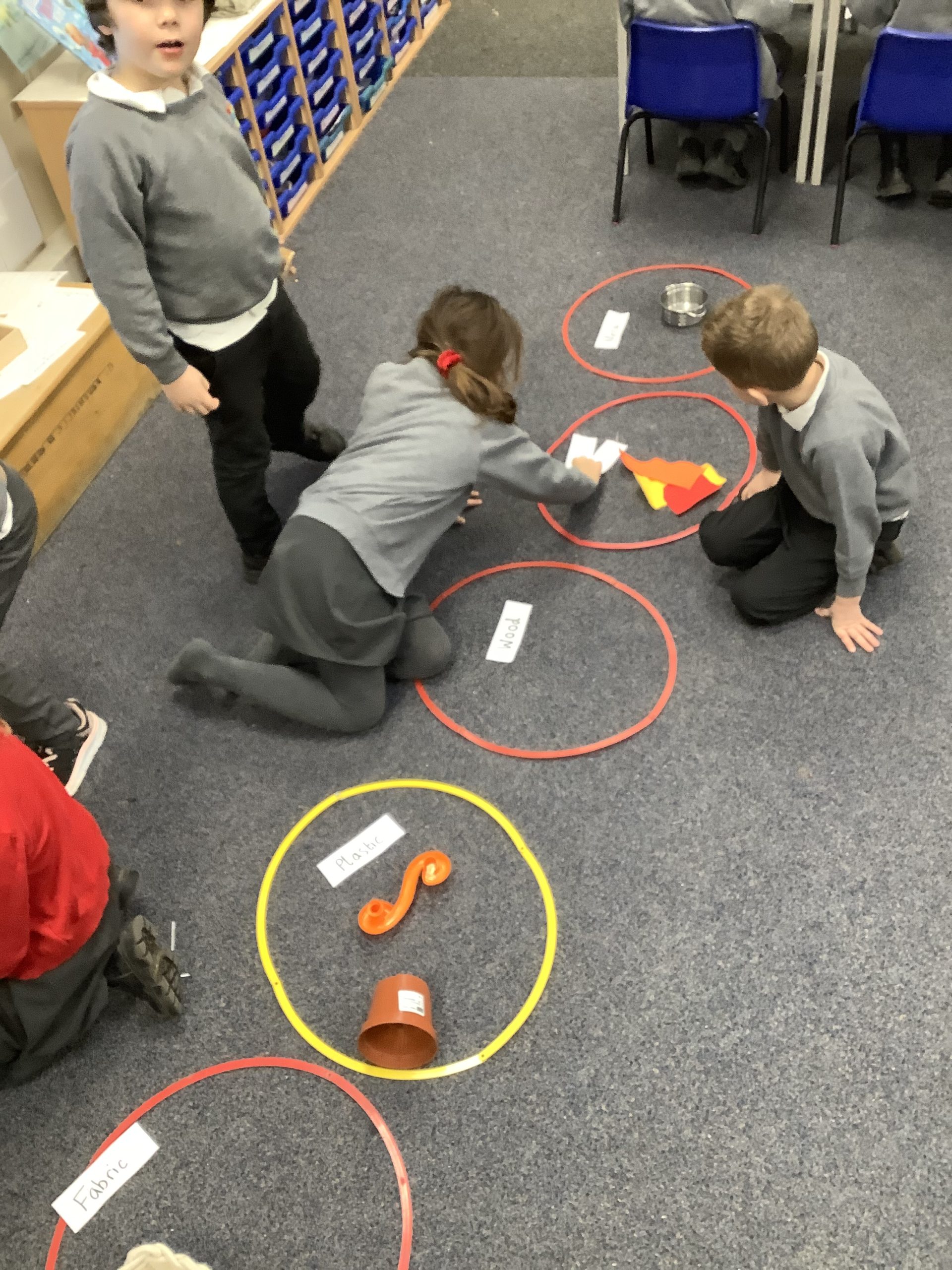 We have started our unit on materials. We learnt that a material is what an object is made of. We sorted various objects into groups based on what material they were made of. These groups included wood, plastic, metal, glass, fabric and brick. Can your child spot any materials at home?