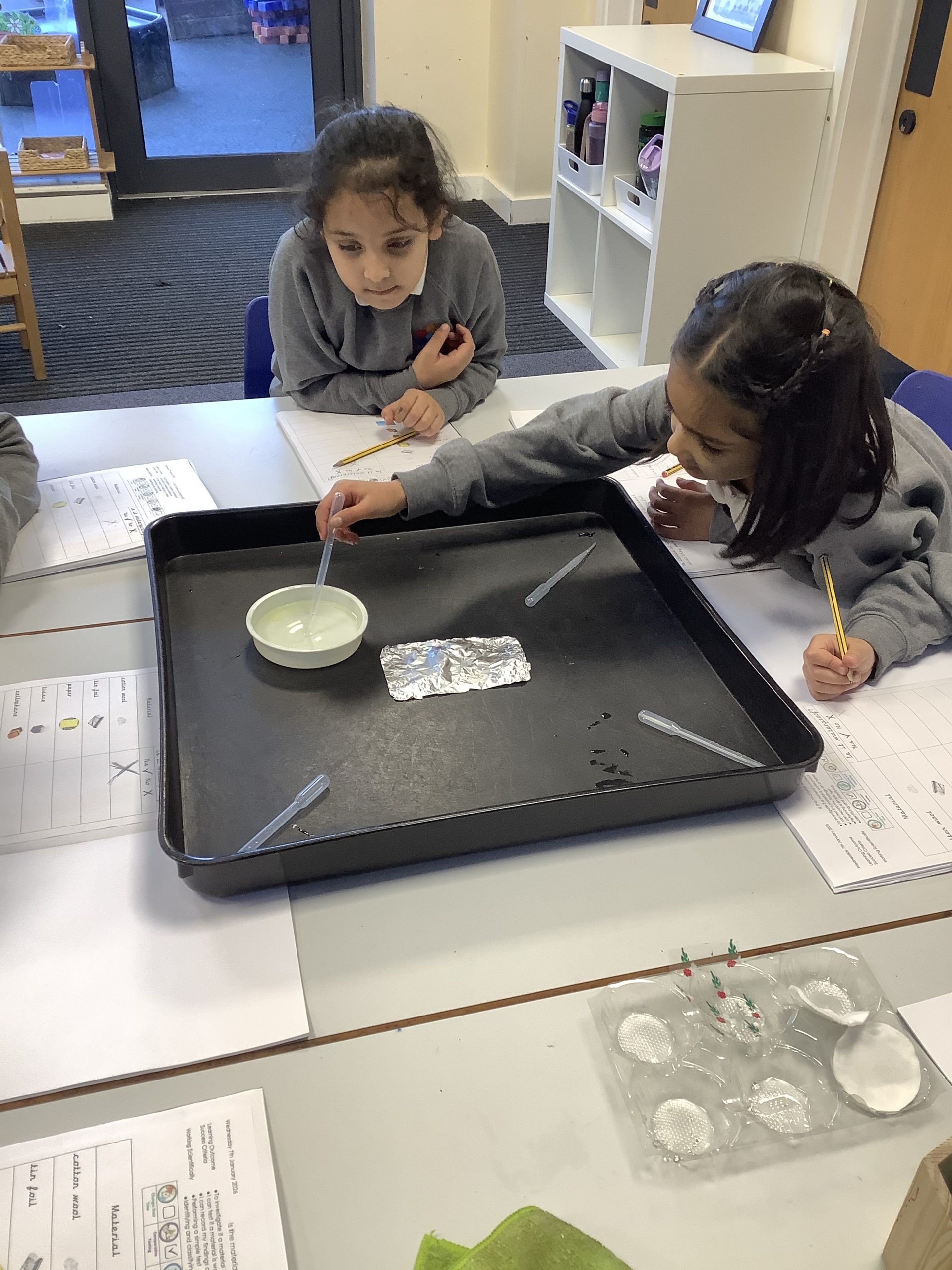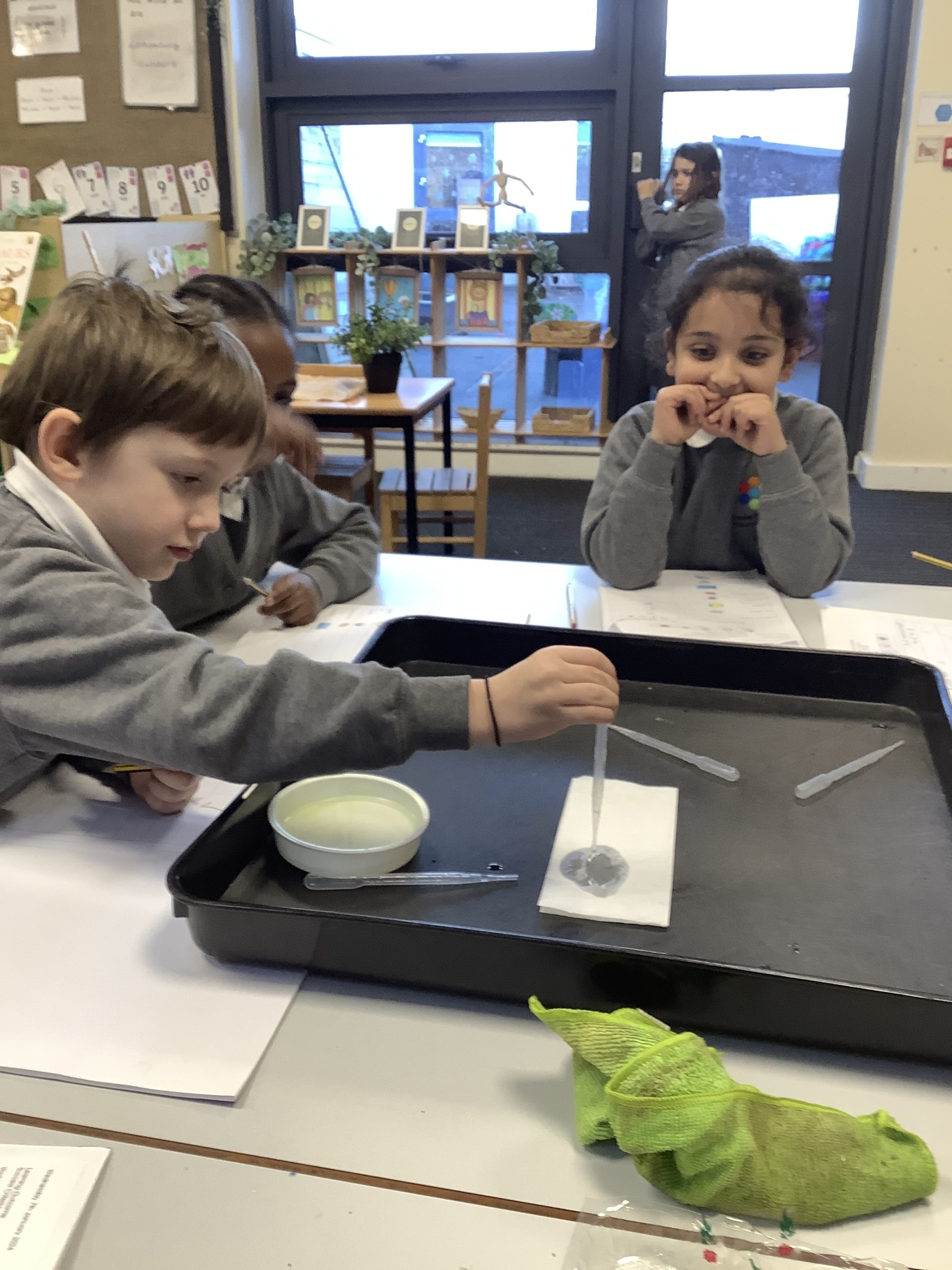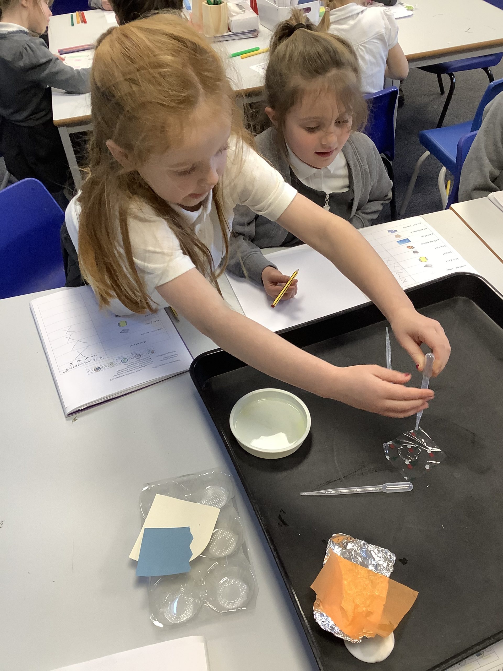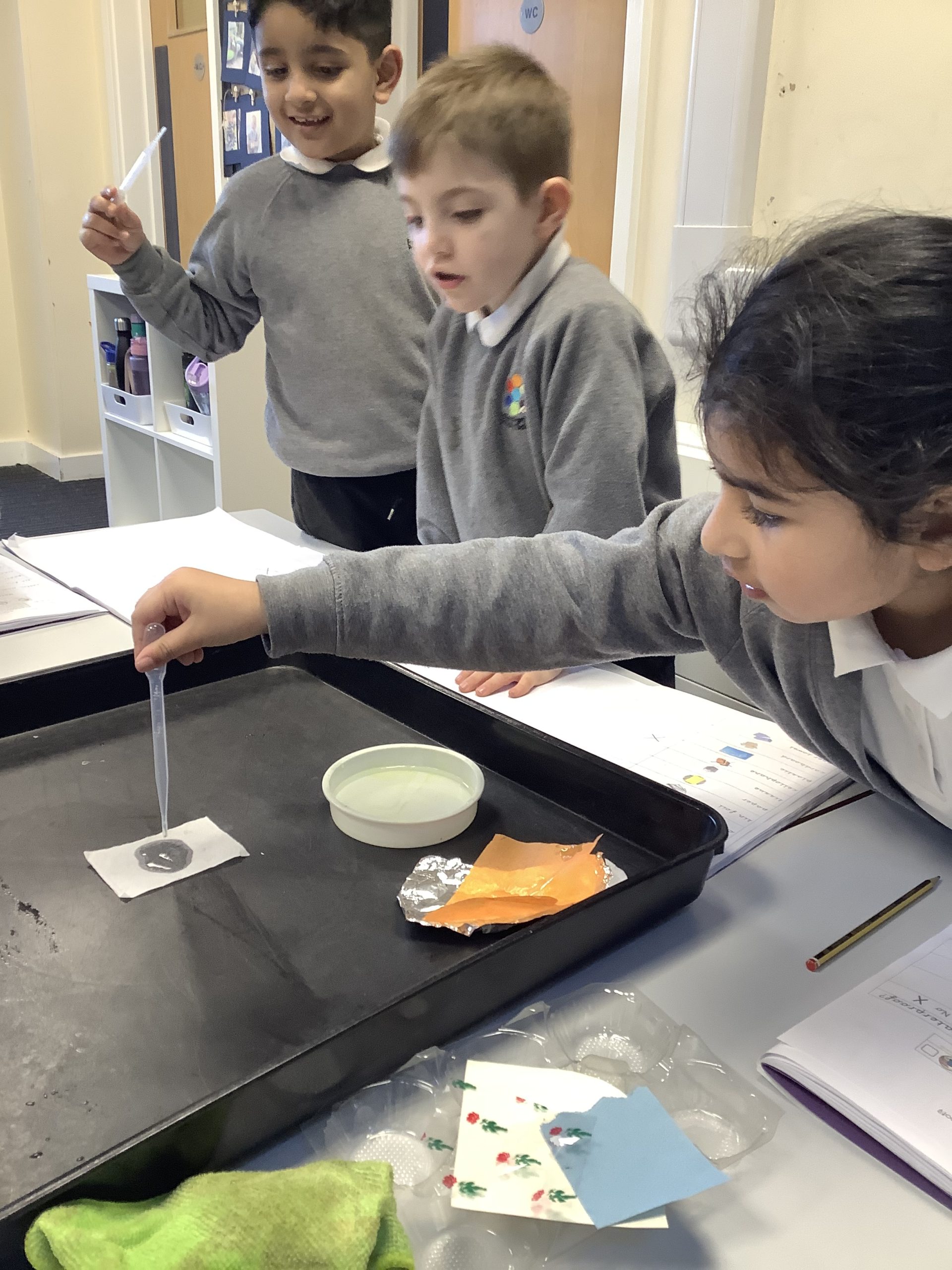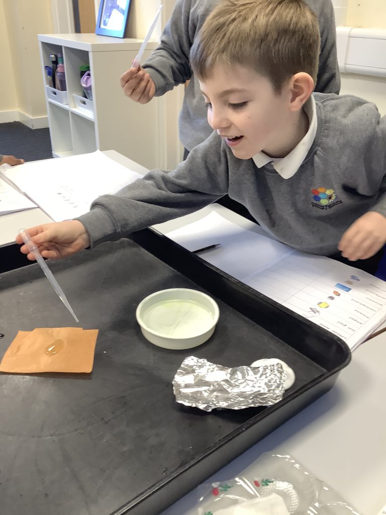 We also looked at the word ‘waterproof’ and what it means. We then tested a variety of materials to see if they were waterproof or not and recorded our findings on a table.