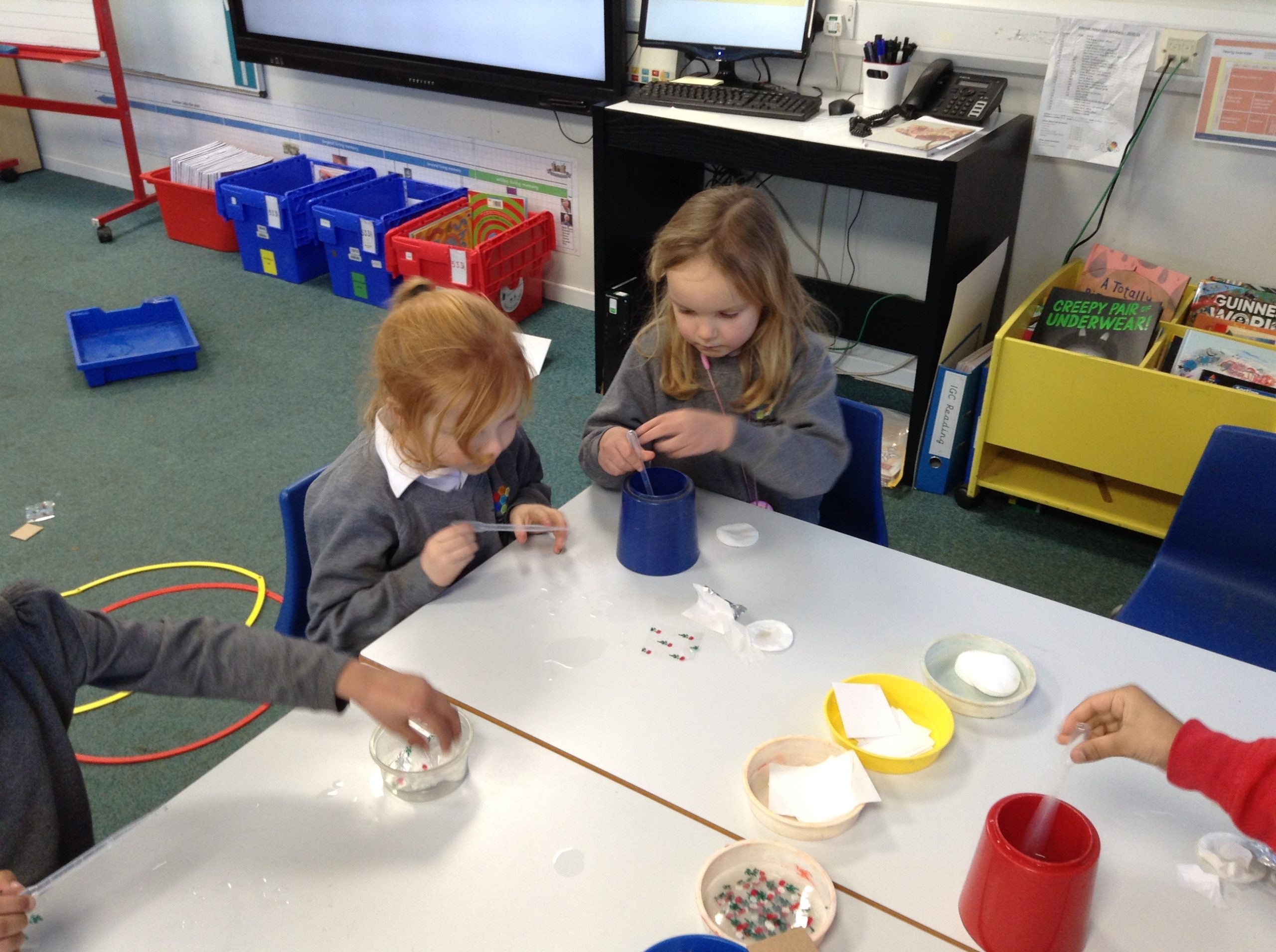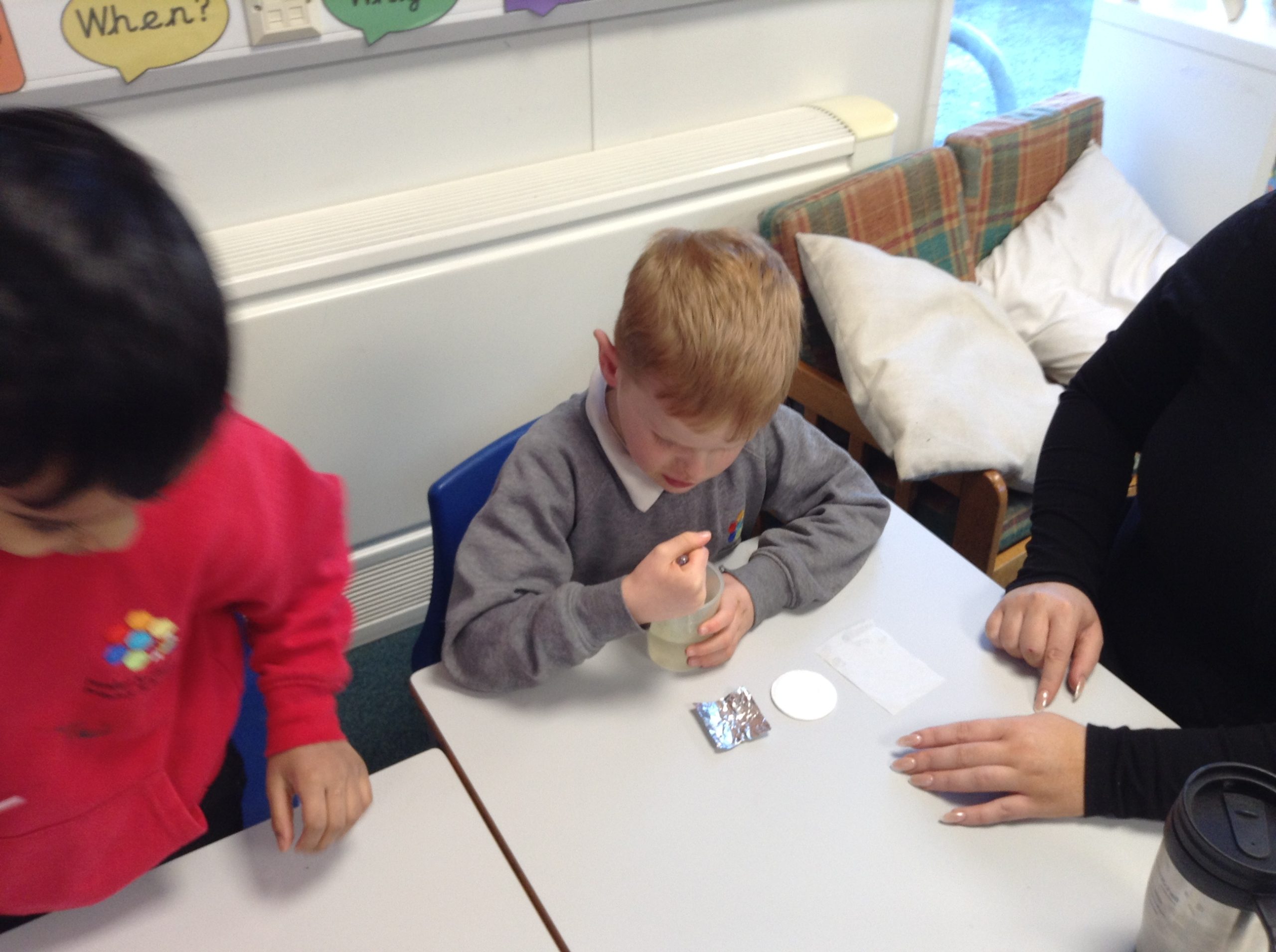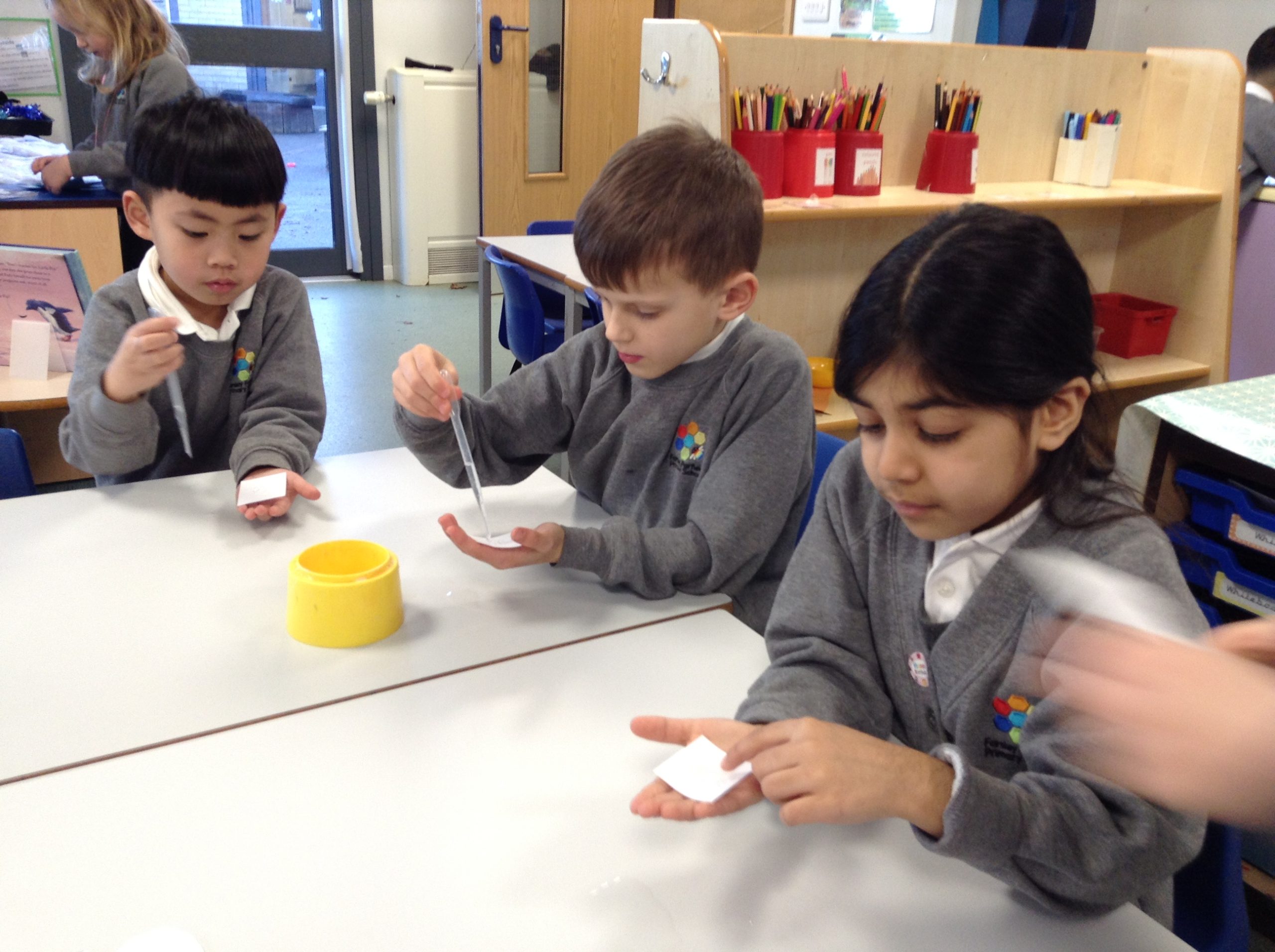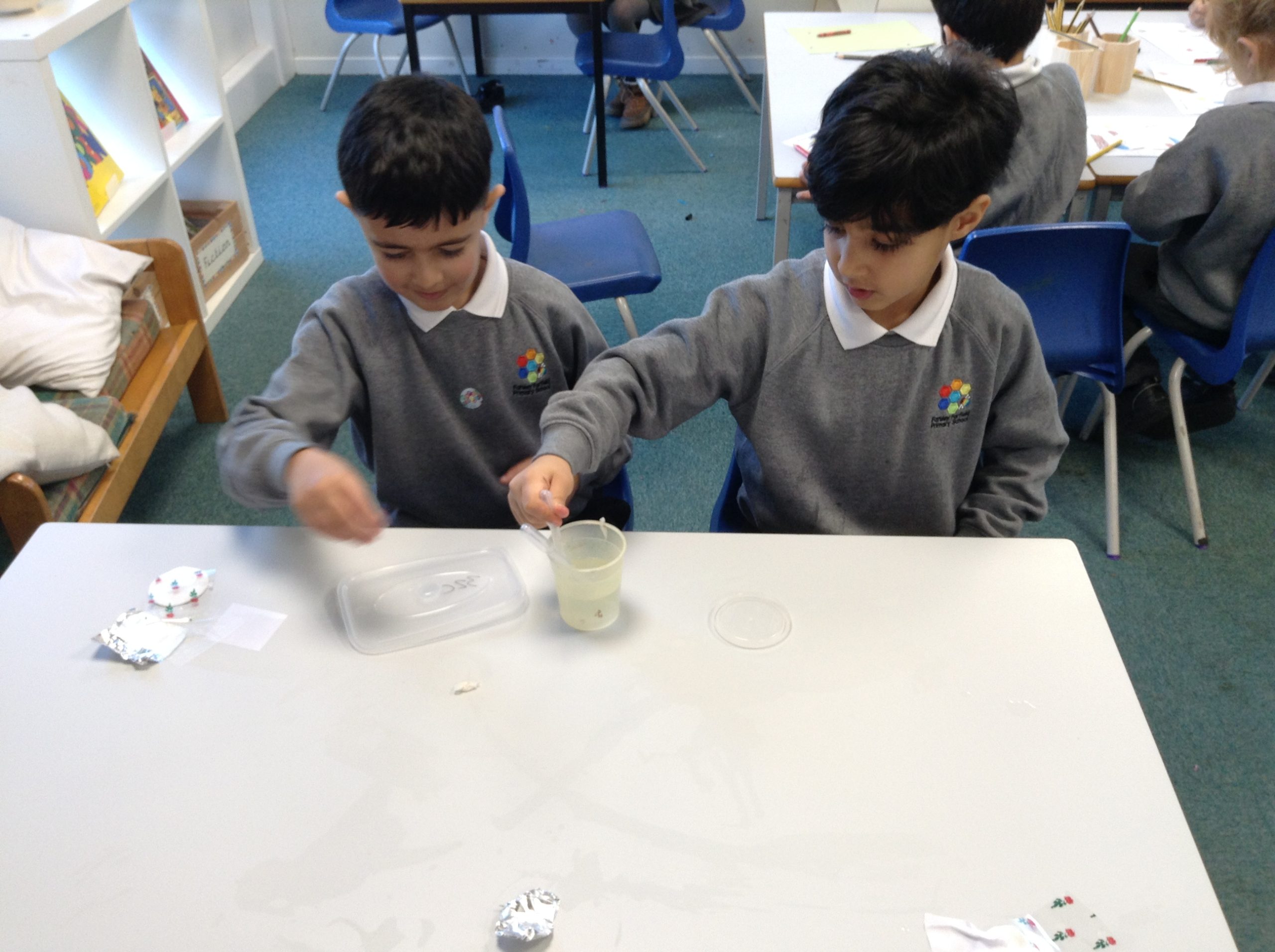 We also looked at the word ‘waterproof’ and what it means. We then tested a variety of materials to see if they were waterproof or not and recorded our findings on a table.