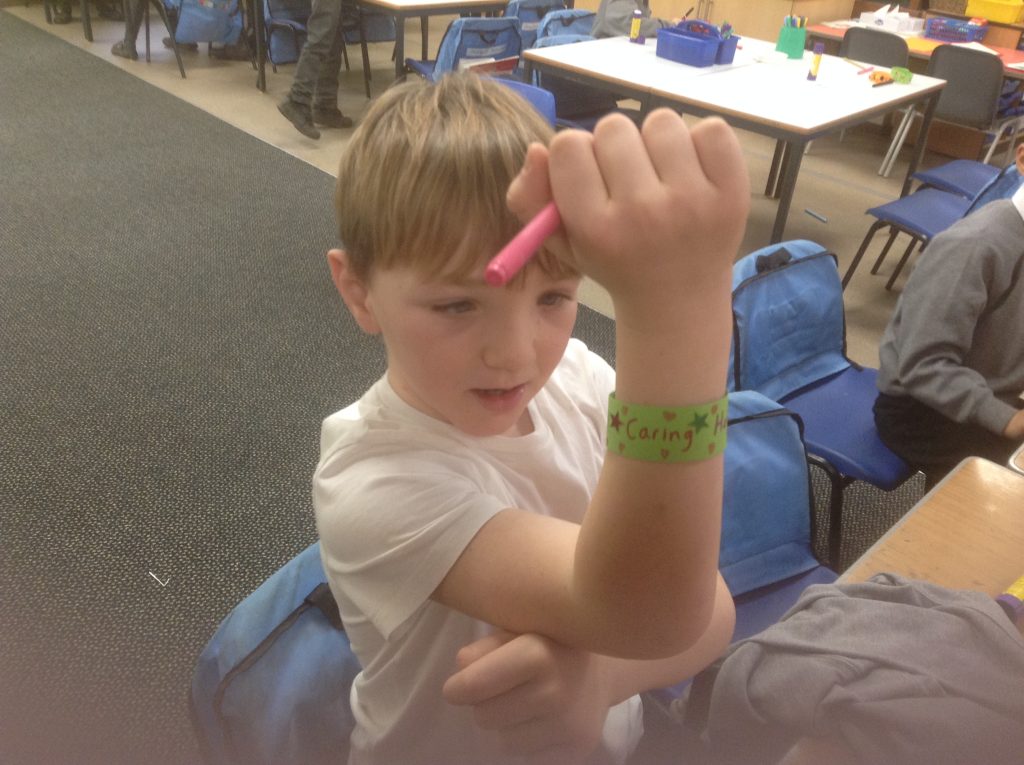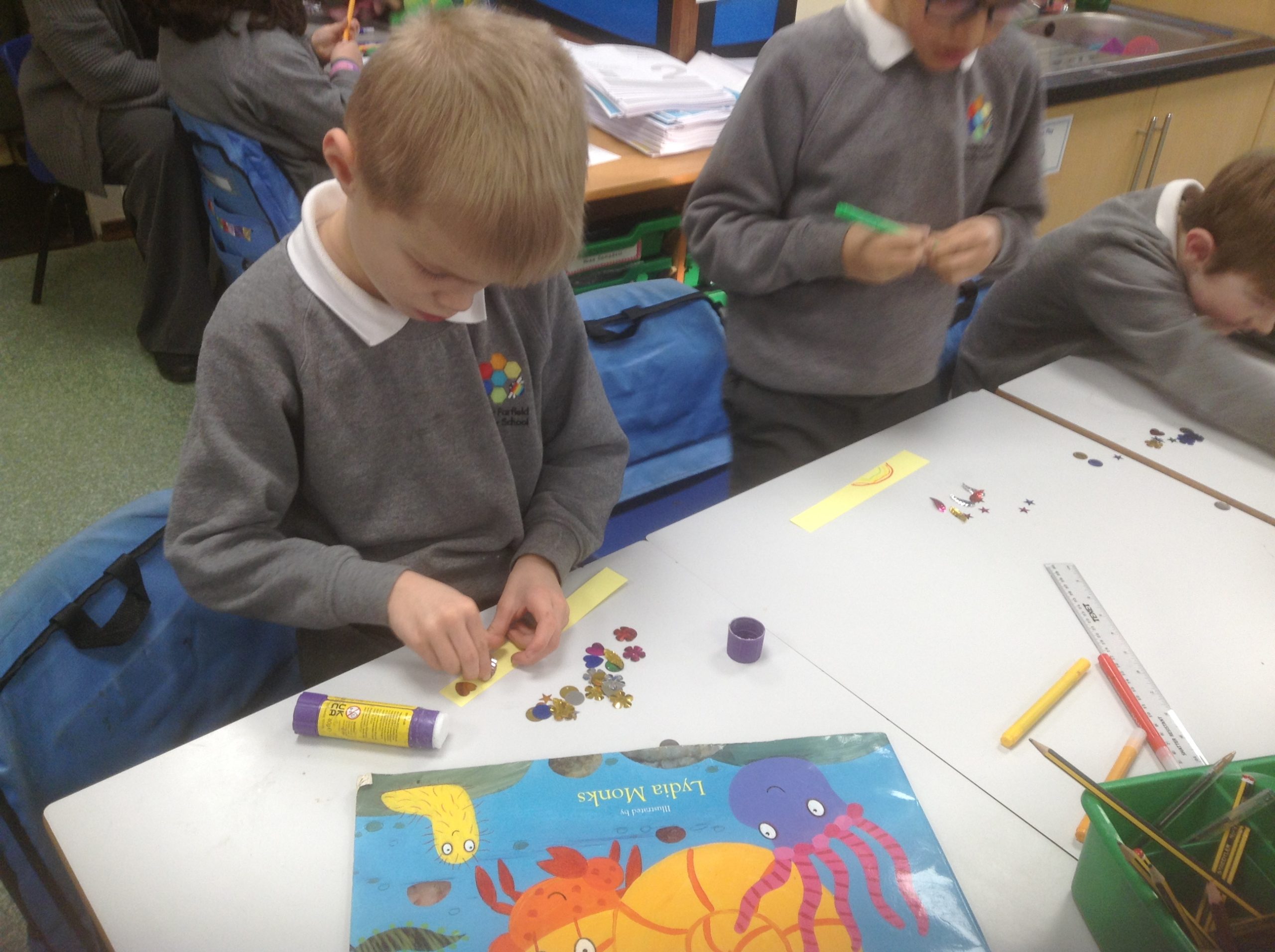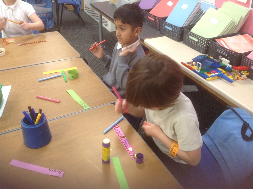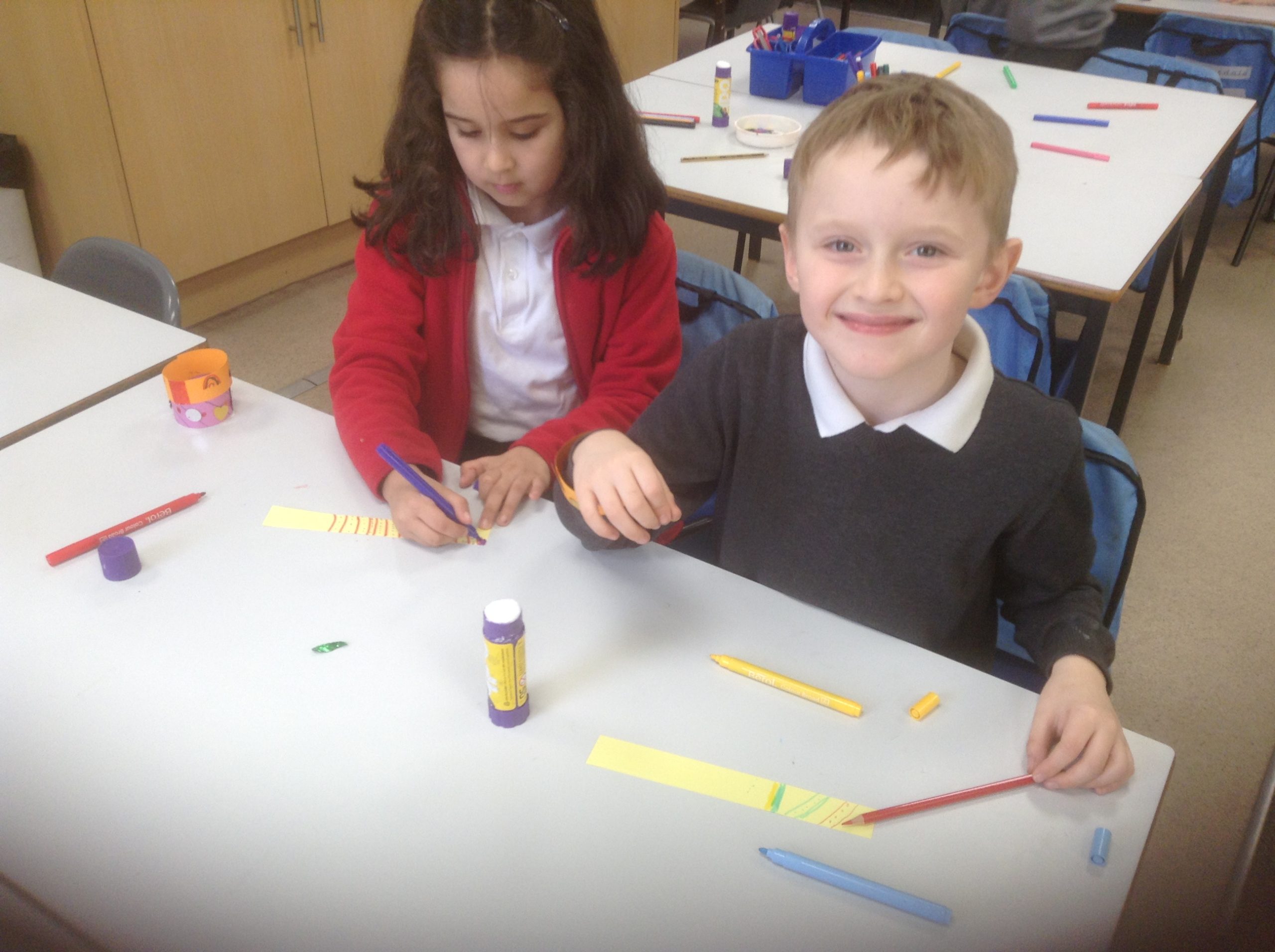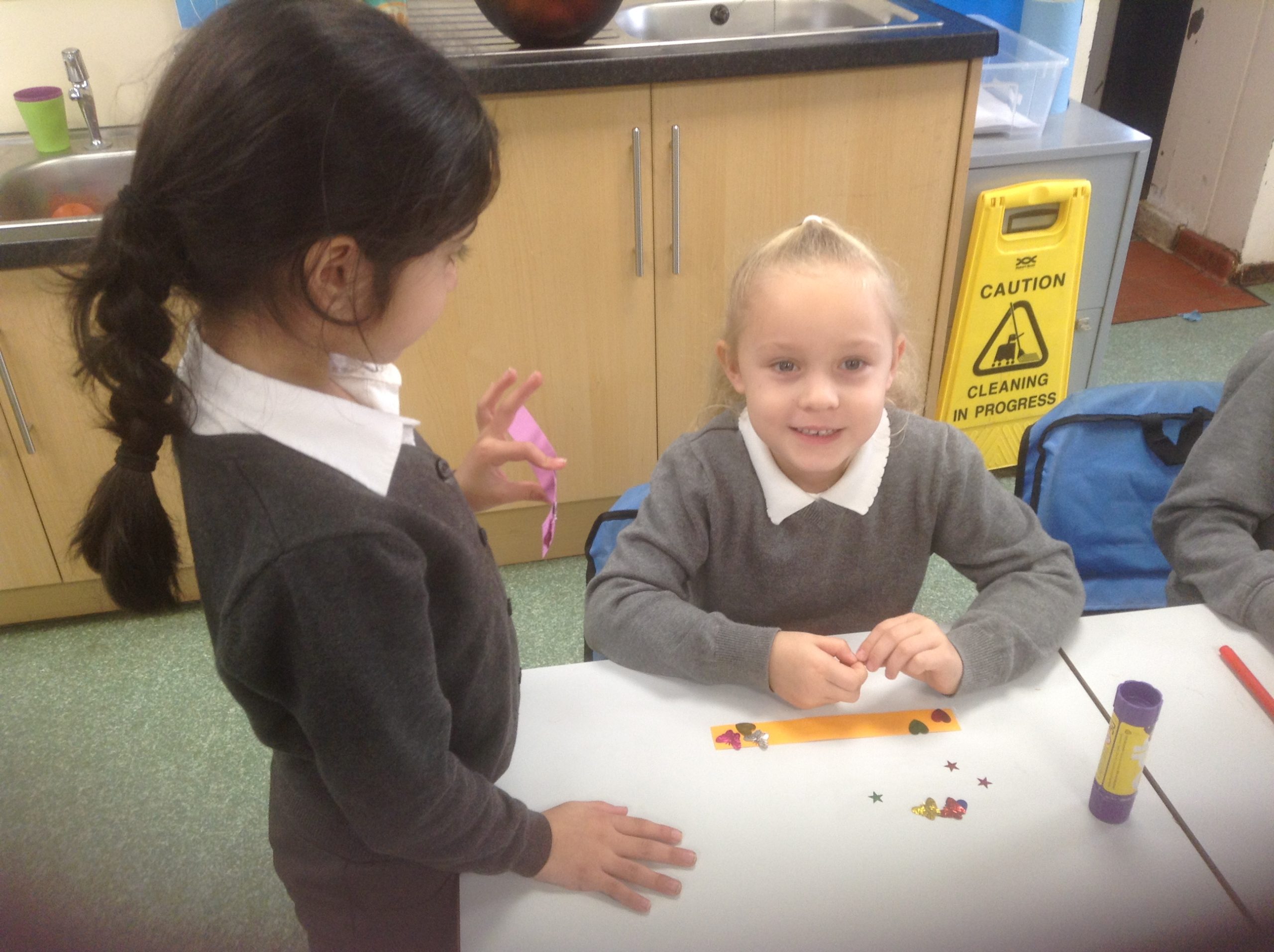We read the story sharing a shell. The children talked about how friendships can break and how we can make friends again. Here we are making friendship bracelets for each other.