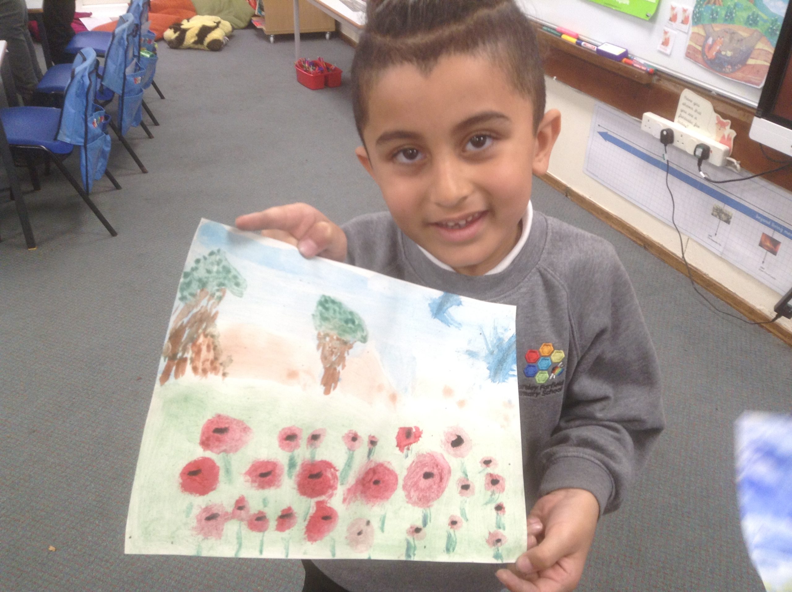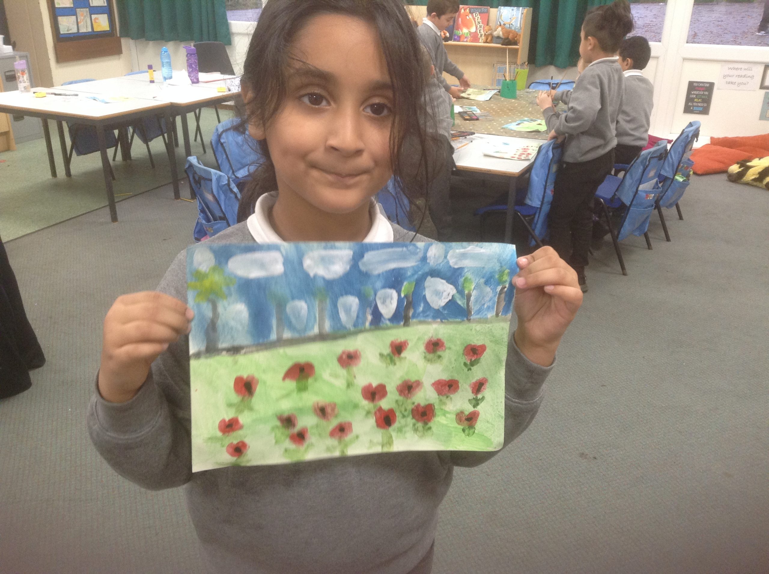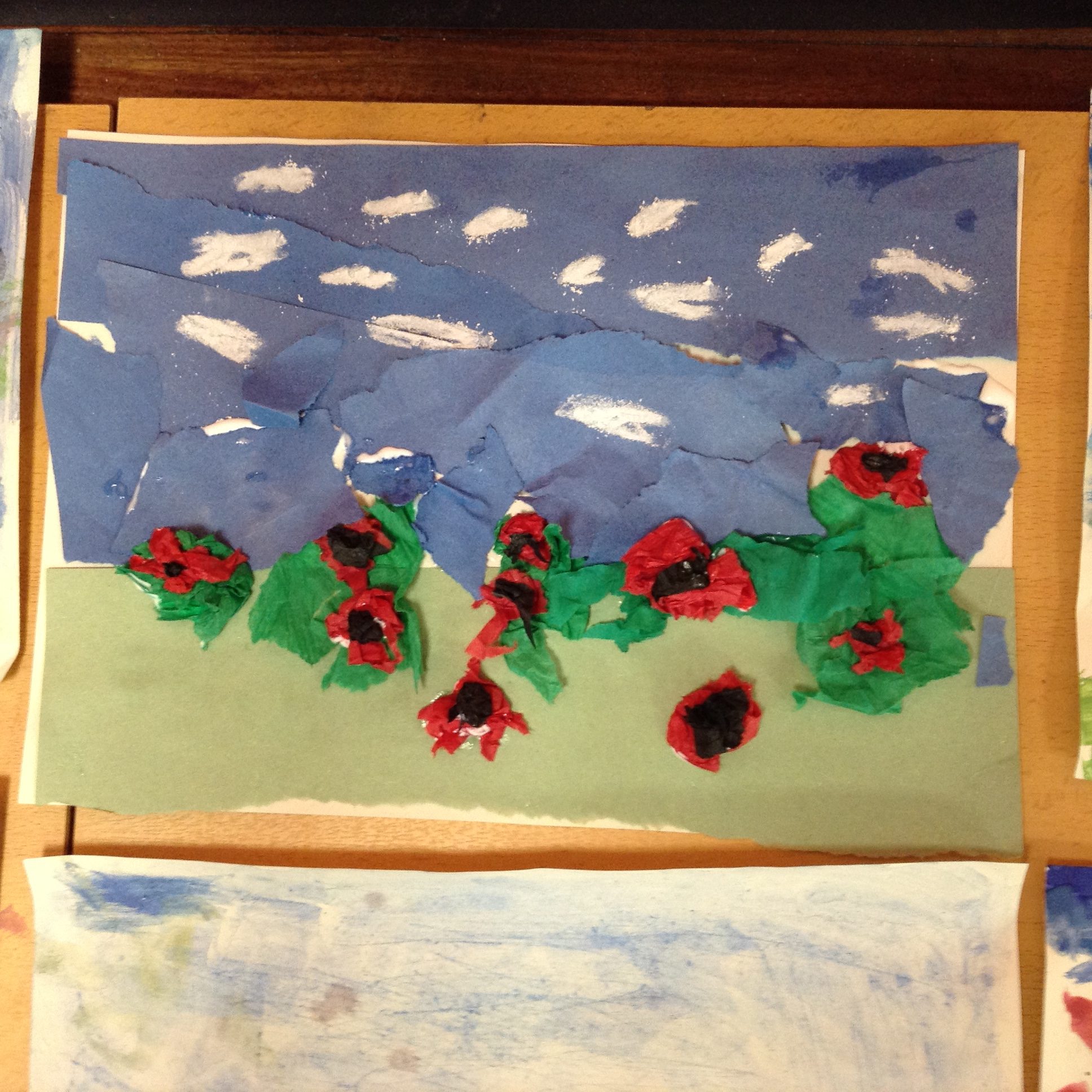 On Monday we talked about why people wear poppies and looked at famous artworks depicting poppy fields. Children were given a choice of media including water colour paints, oil pastels and collage materials to produce their own artworks.