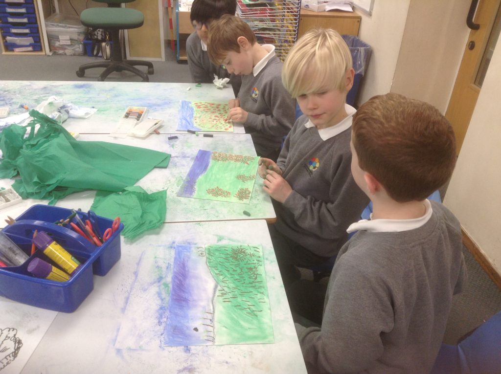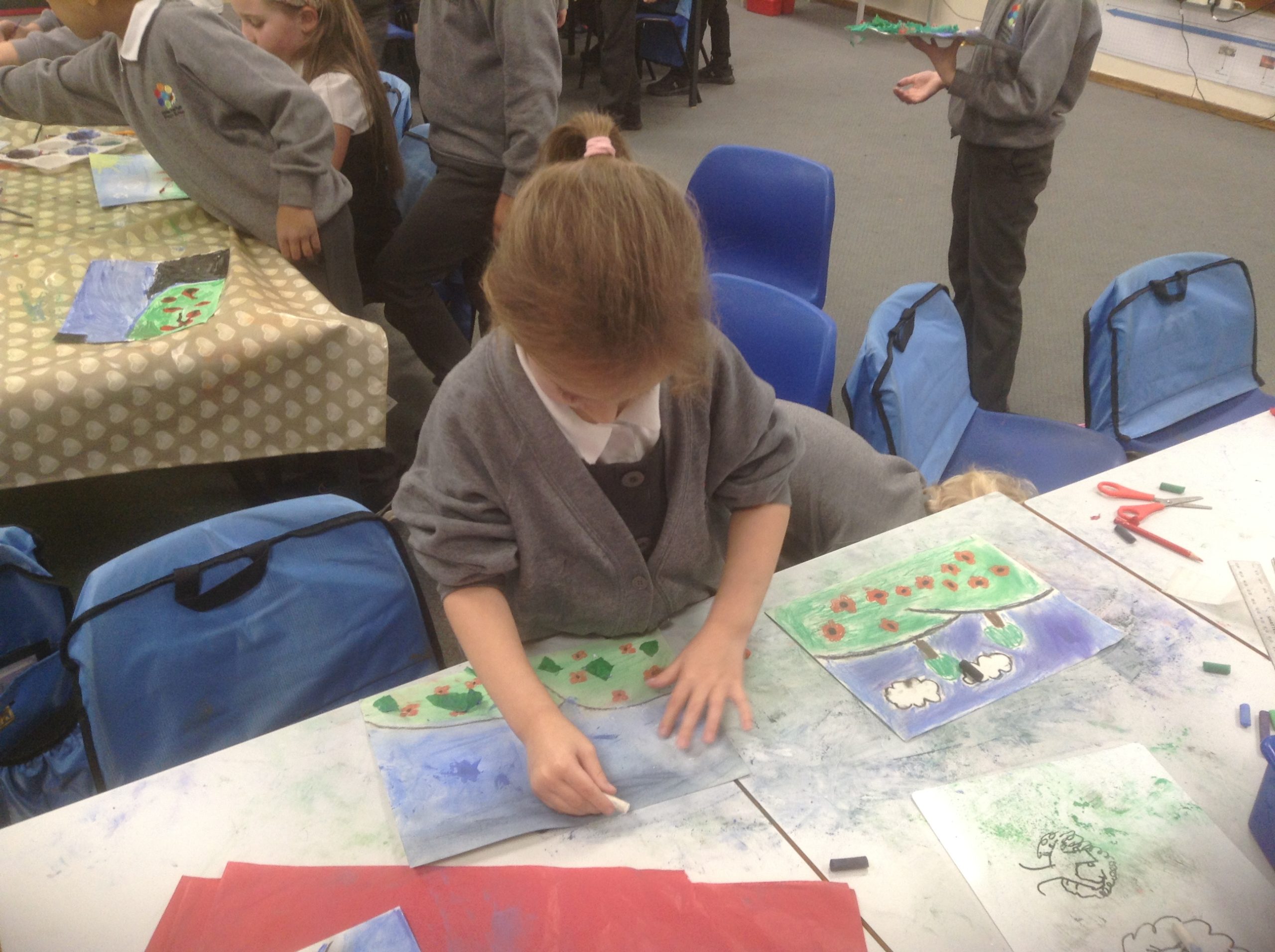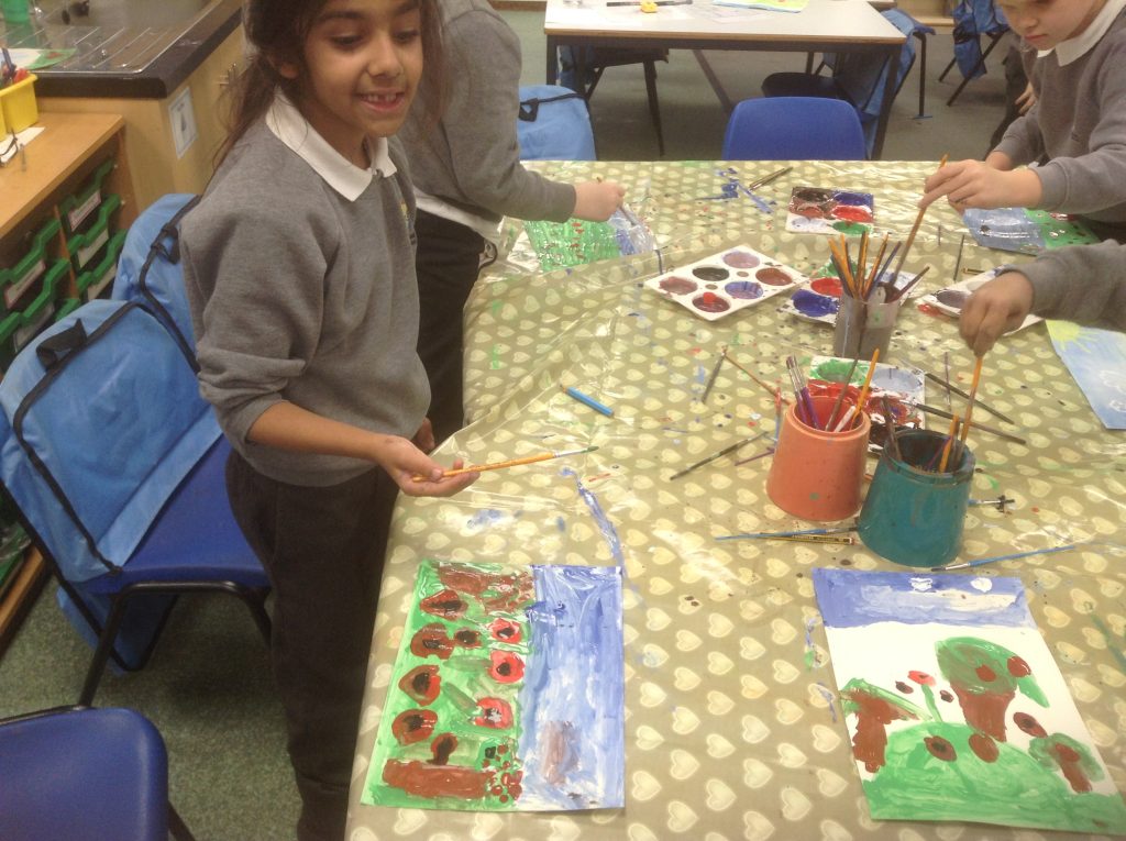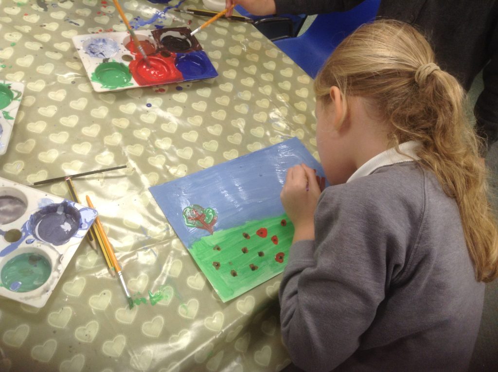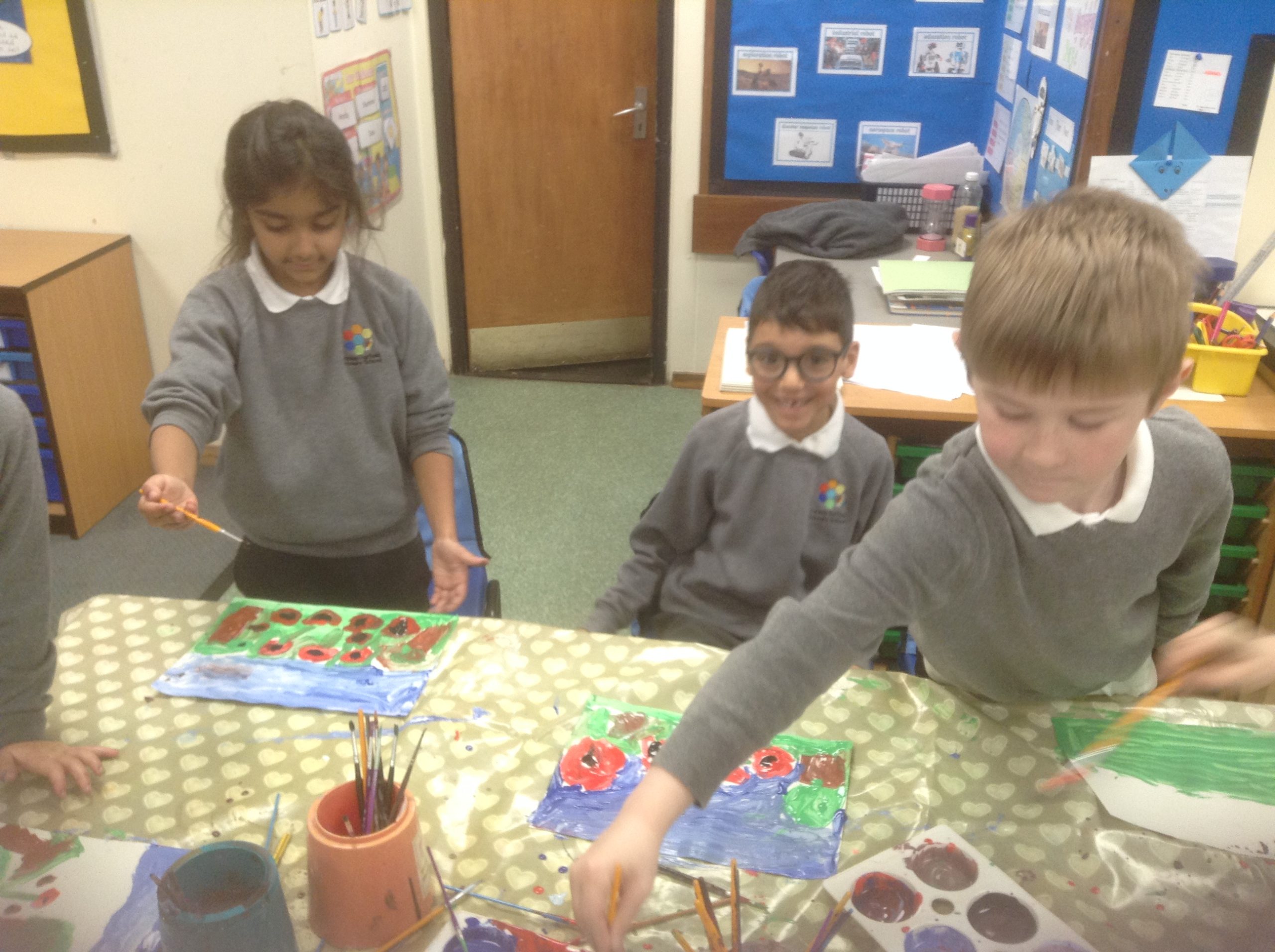 On Monday we talked about why people wear poppies and looked at famous artworks depicting poppy fields. Children were given a choice of media including water colour paints, oil pastels and collage materials to produce their own artworks.