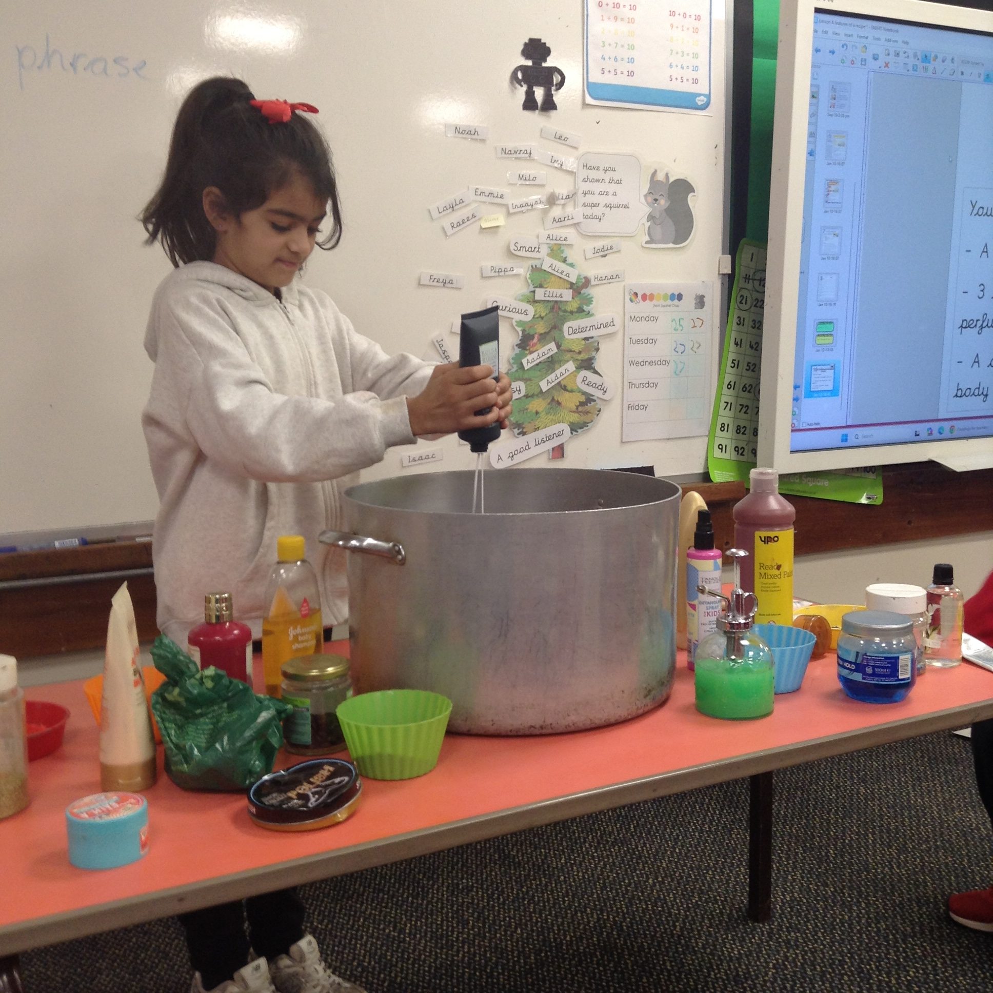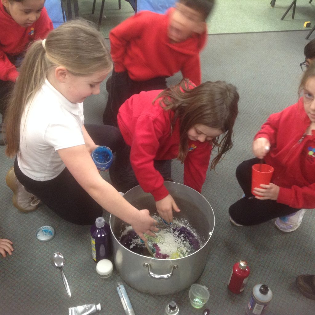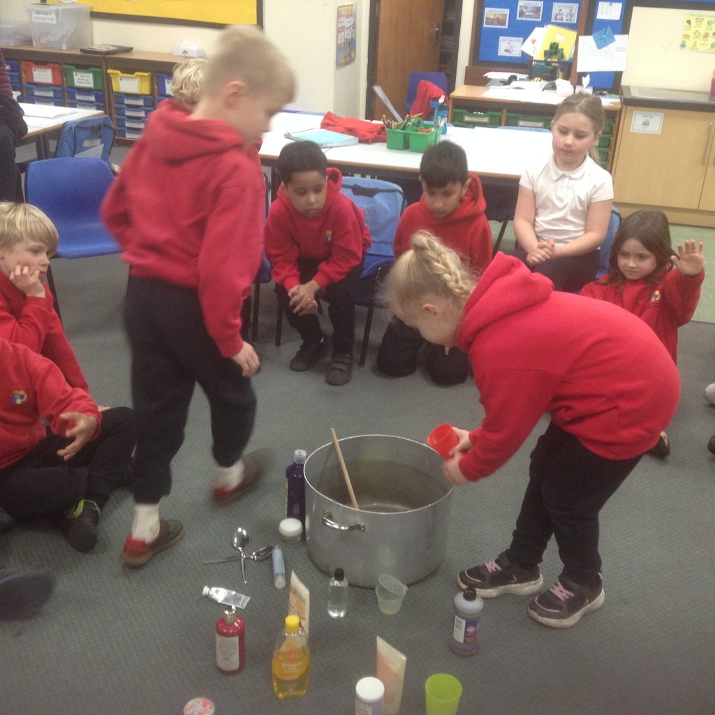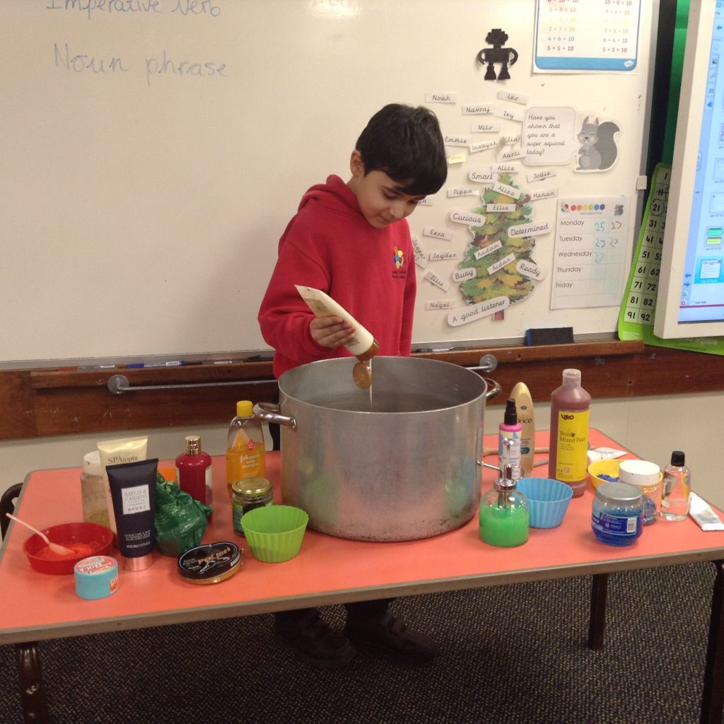 Inspired by Roald Dahl’s story, we made our own Marvellous Medicines with the gloopiest, stinkiest ingredients we could find. Children rehearsed verbal instructions while directing others to add things to the pan. We have started to write up our recipes and will finish these next week.