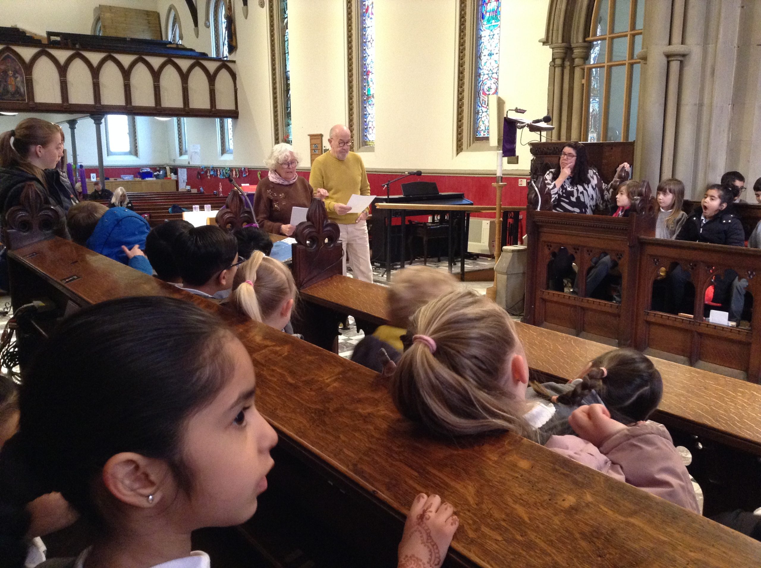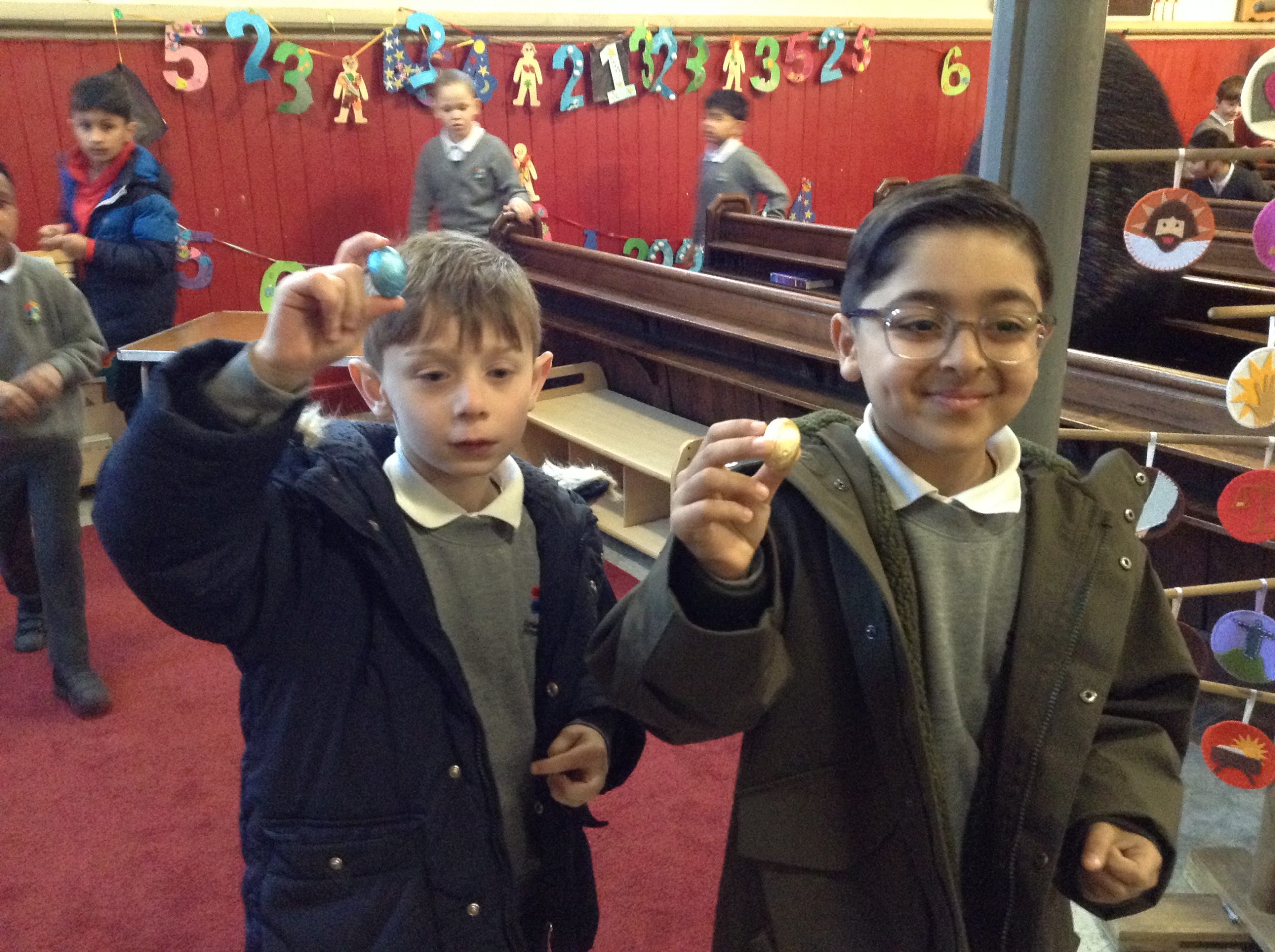 As well as going on our fantastic trip to Yorkshire Wildlife Park earlier in the week, we have also had a local visit to St John’s Church to learn about the Easter story. We were welcomed by vicar Nathaniel, along with volunteers John and Pauline, who told us the story. Other volunteers set up an egg hunt for us. We enjoyed some songs too! Thank you very much to the parent volunteers who came with us; without your support, we couldn’t do local visits like this.