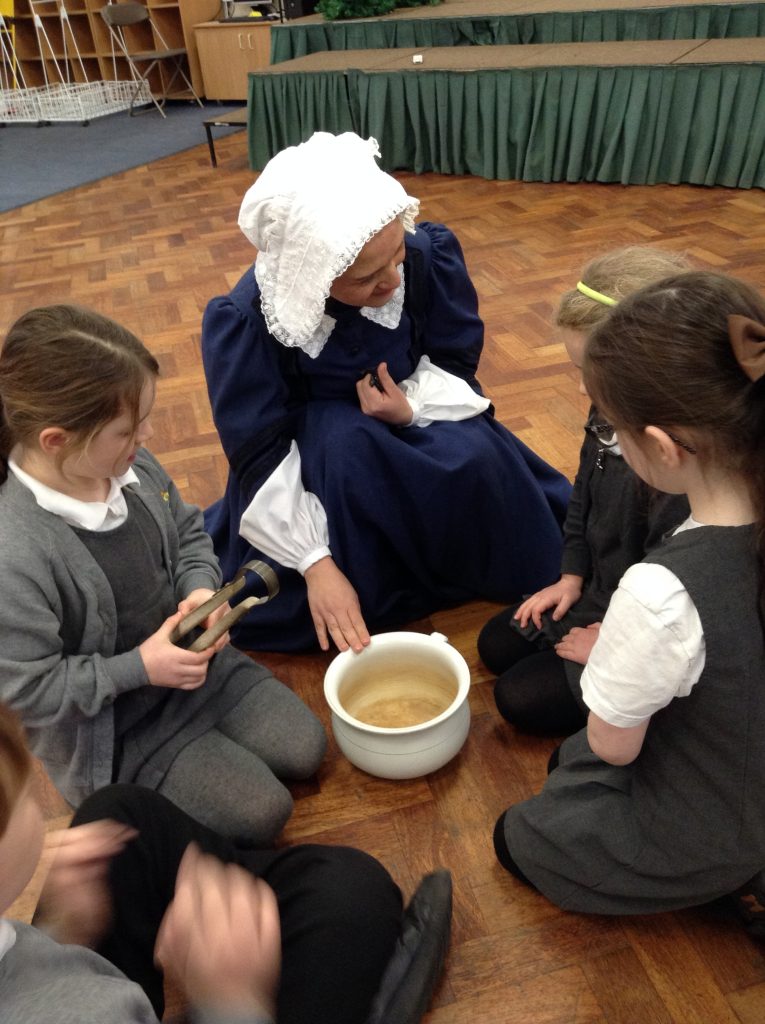 On Monday we really enjoyed meeting Florence Nightingale. She told us all about her life. We enjoyed a teddy hospital activity and then looked at some objects that Florence would have used in Scutari Hospital.