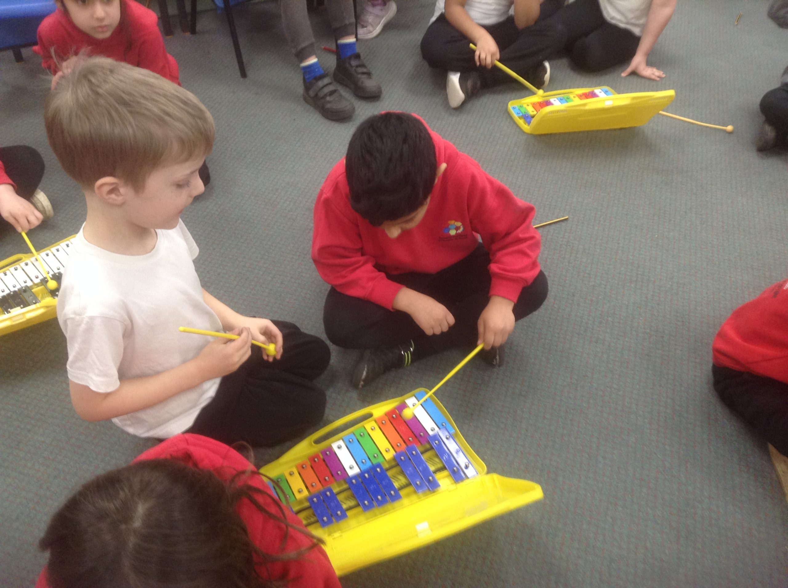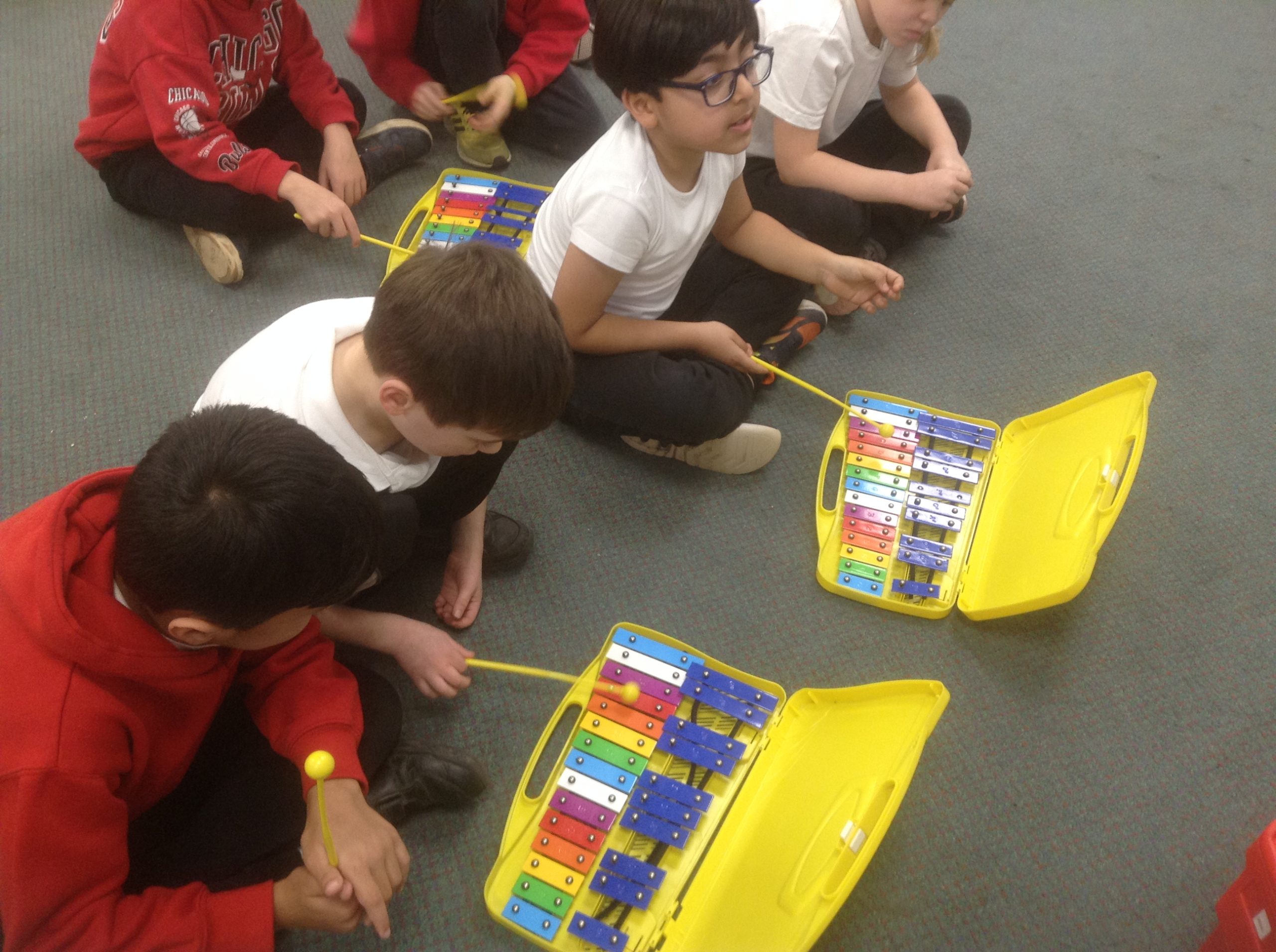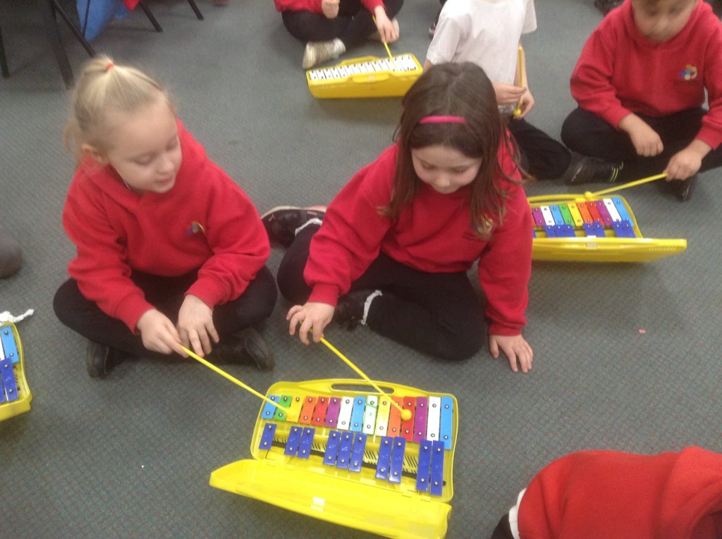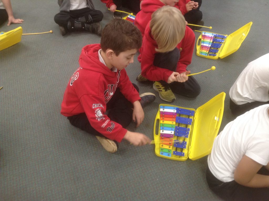 We have been learning a song called Rainbows in music. This week we added a musical accompaniment with the glockenspiels!