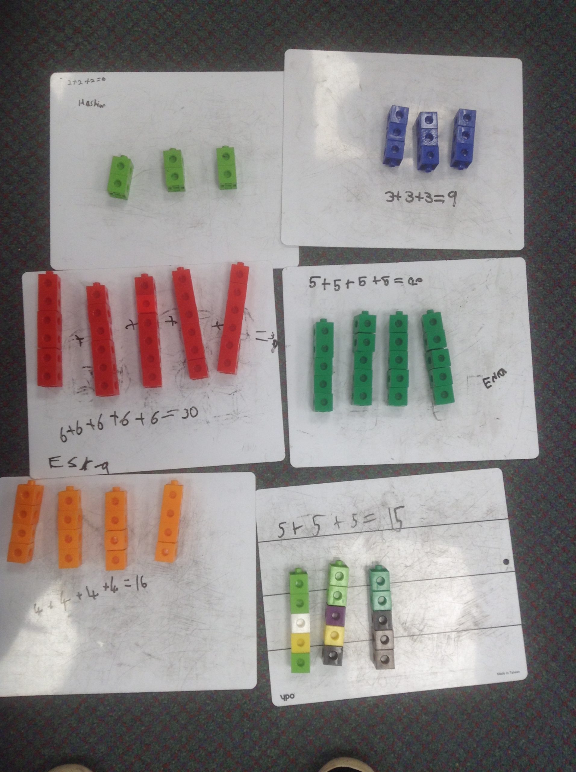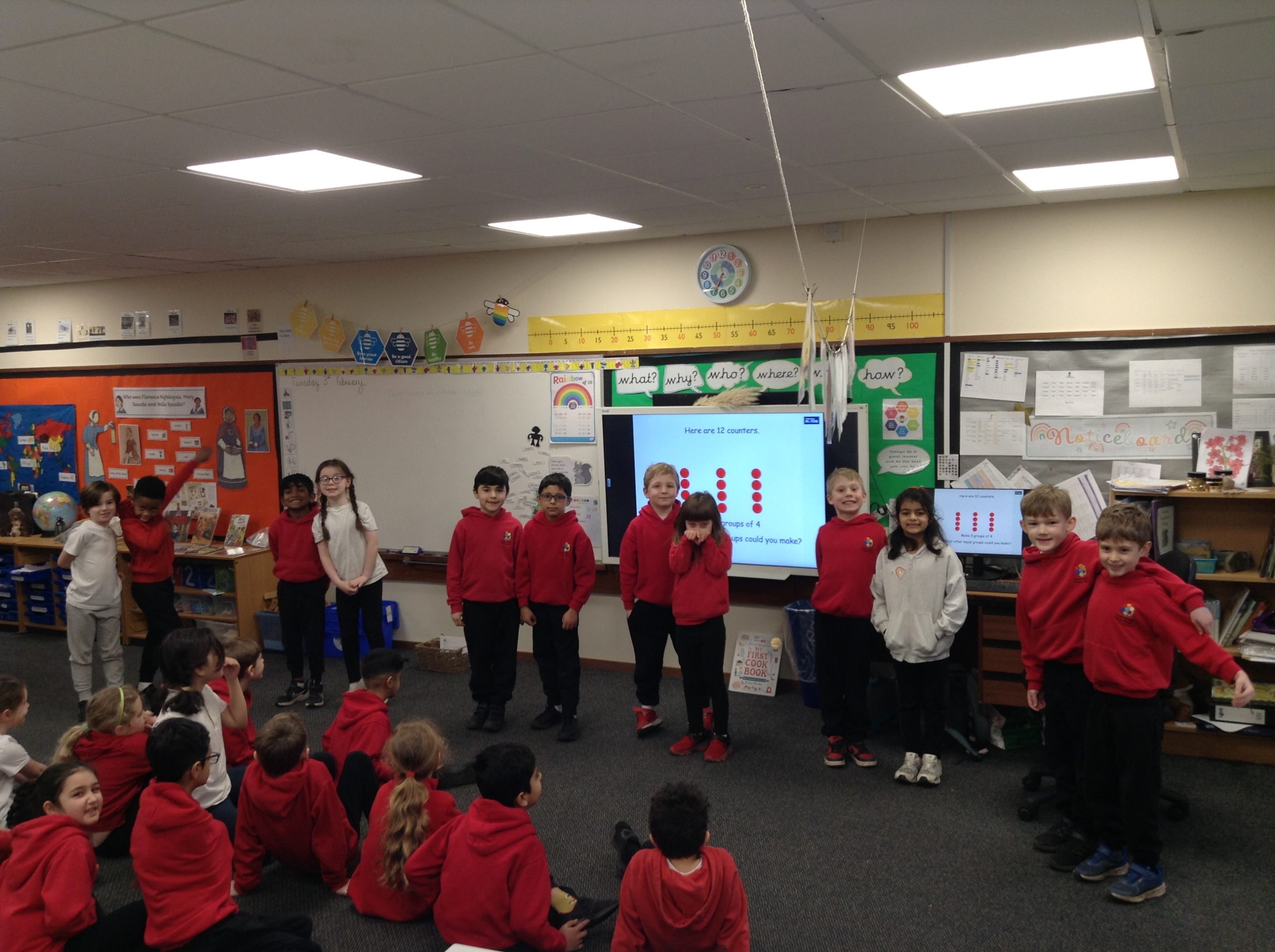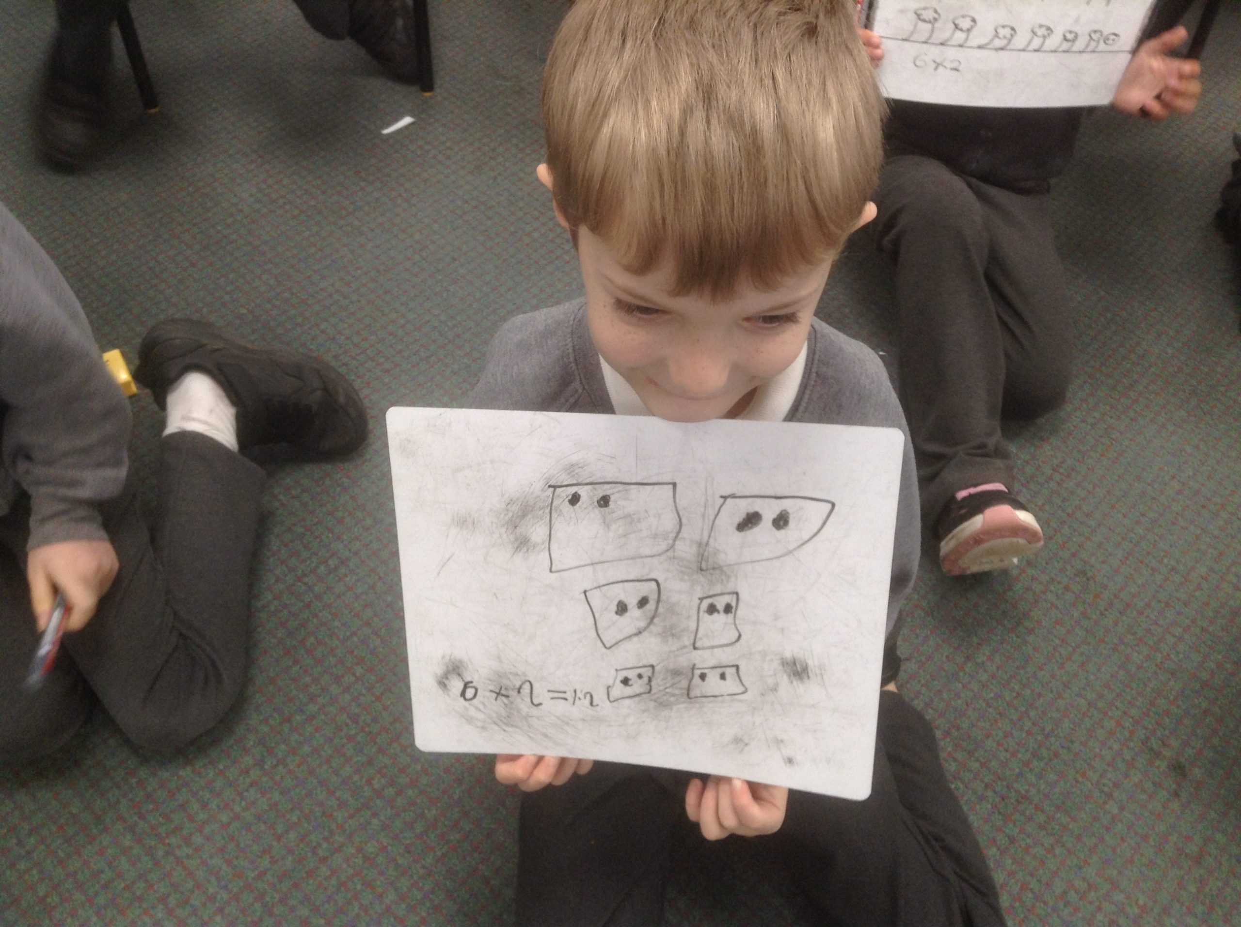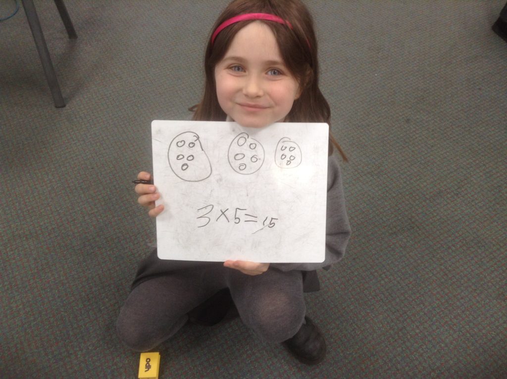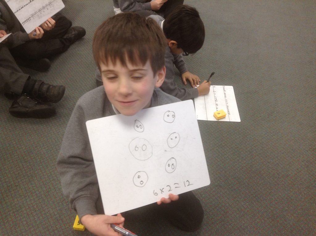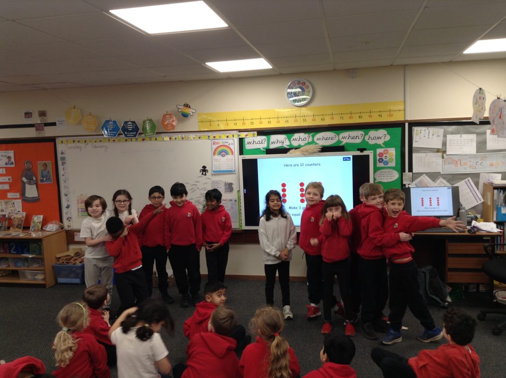 We have started work on multiplication, looking at making and adding equal groups. In these pictures of 2MW you can see 2 equal groups of 6 and 6 equal groups of 2. How else could you organise the 12 children?