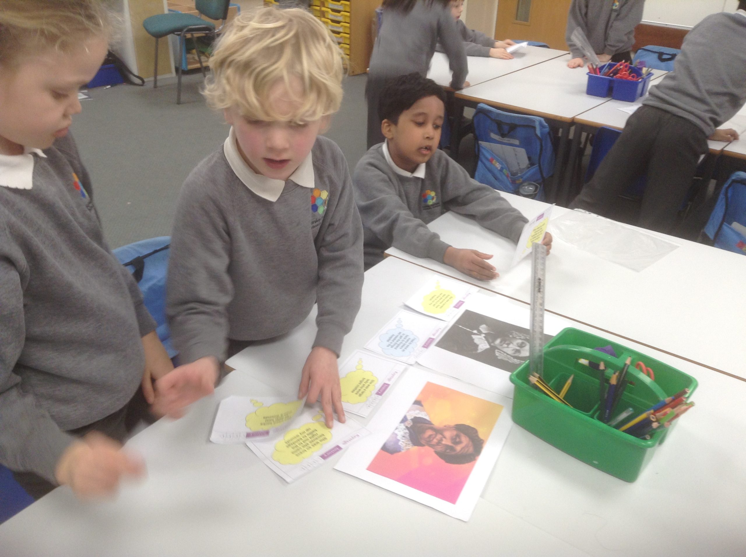 The children continue to show great enthusiasm for our history topic. This week we have compared the lives of Florence Nightingale and Mary Seacole. In this activity, the children are matching speech bubbles to the correct person and considering if it was said by them or about them.