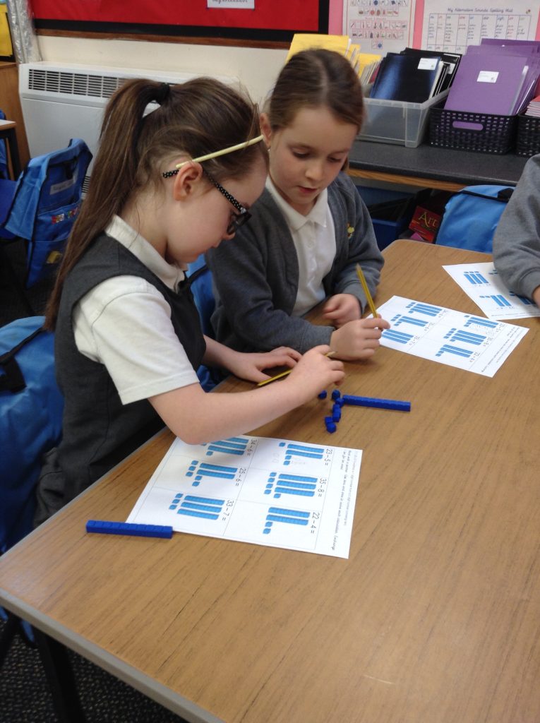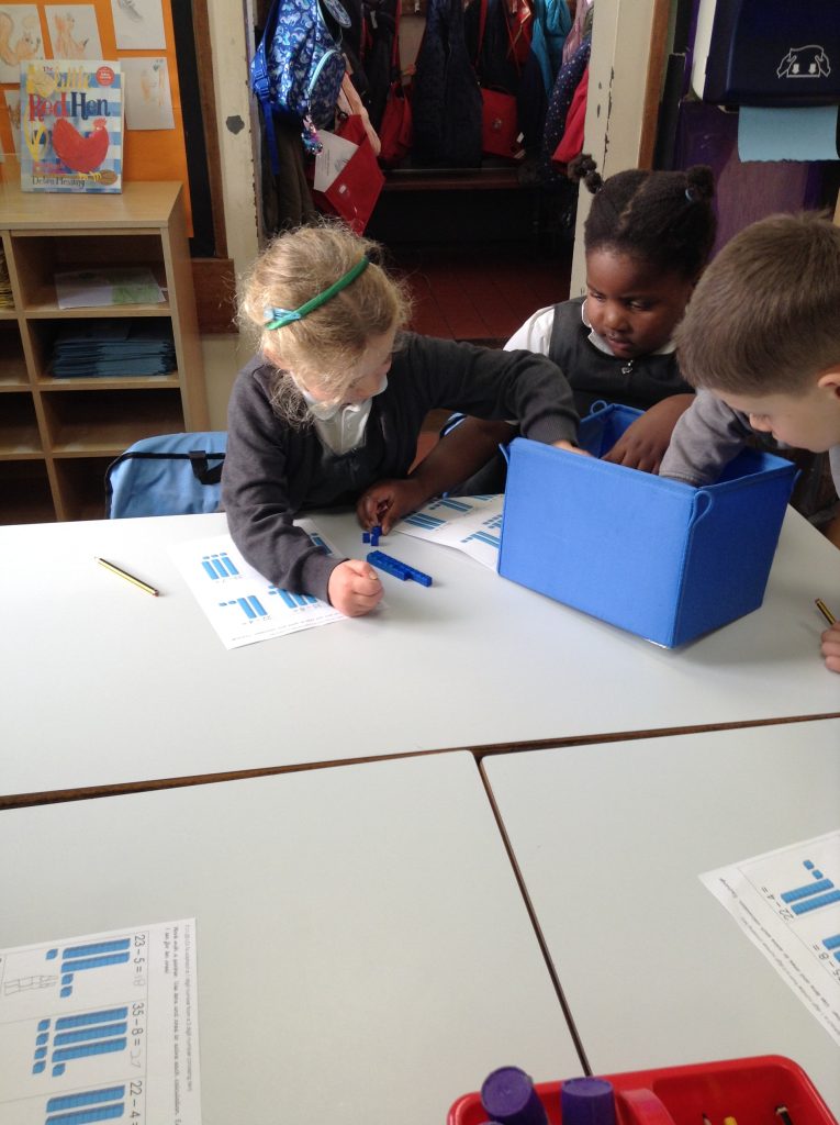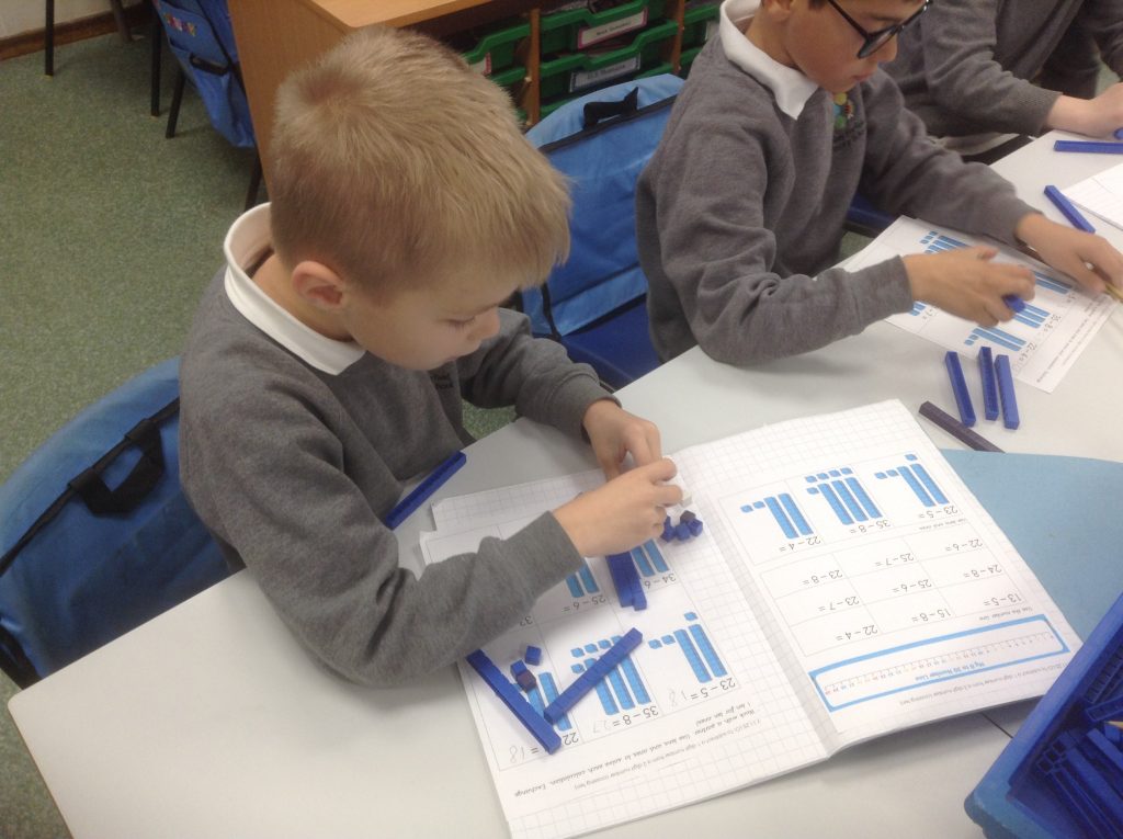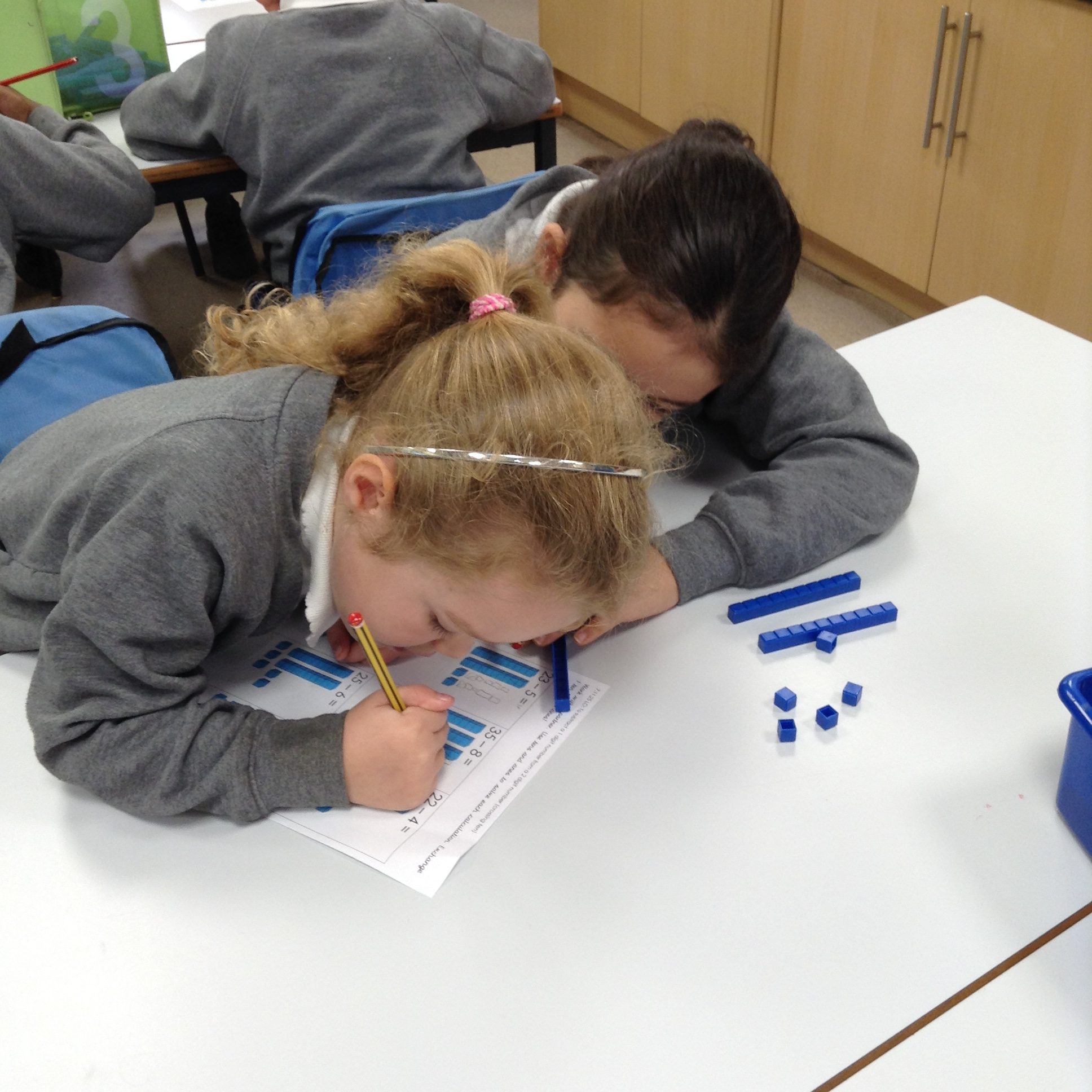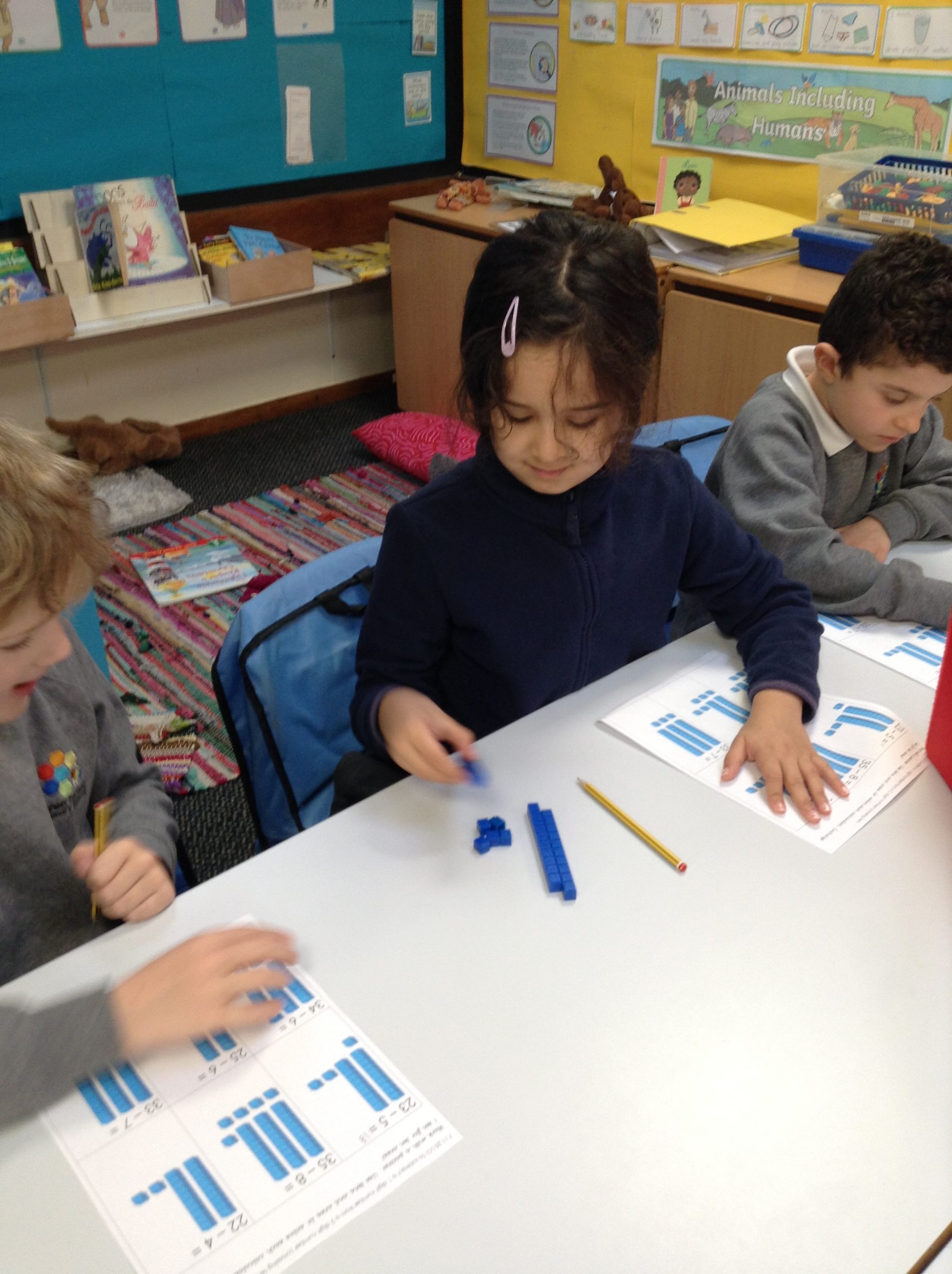 This week we have been subtracting ones from a two digit number. We have been subtracting to a ten e.g. 13-3, 23-3, 33-3 and subtracting from a 10 e.g. 10-7, 20-7, 30-7. We then used these skills to subtract across a ten e.g. 12-9