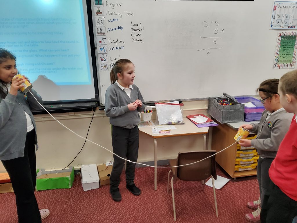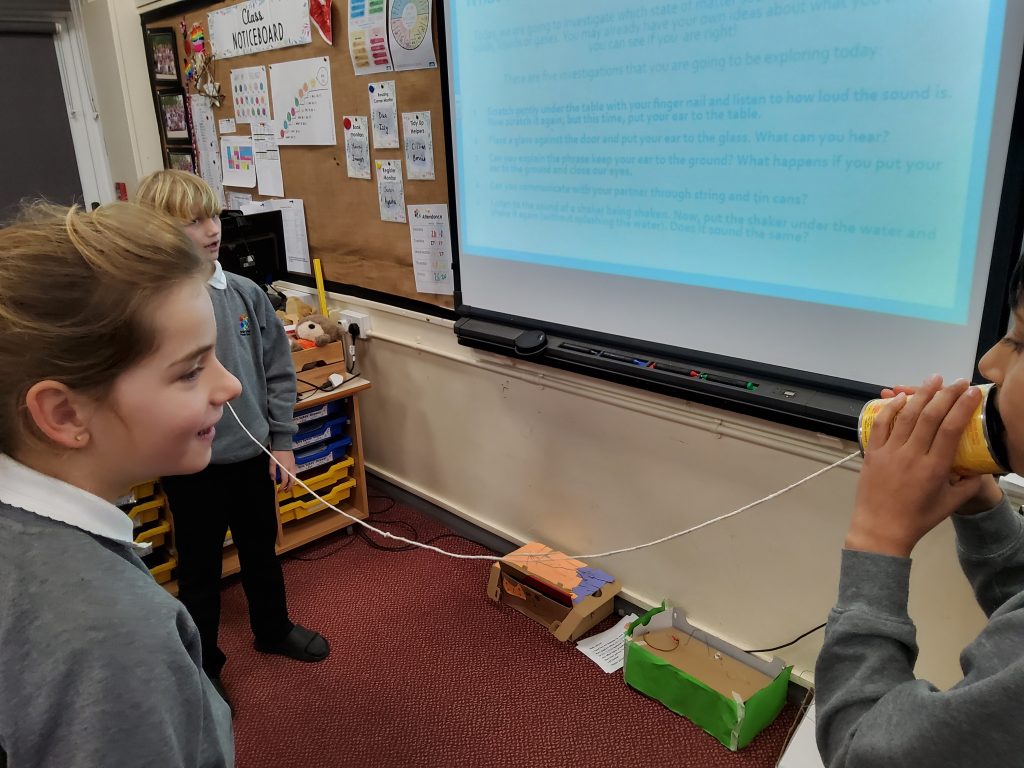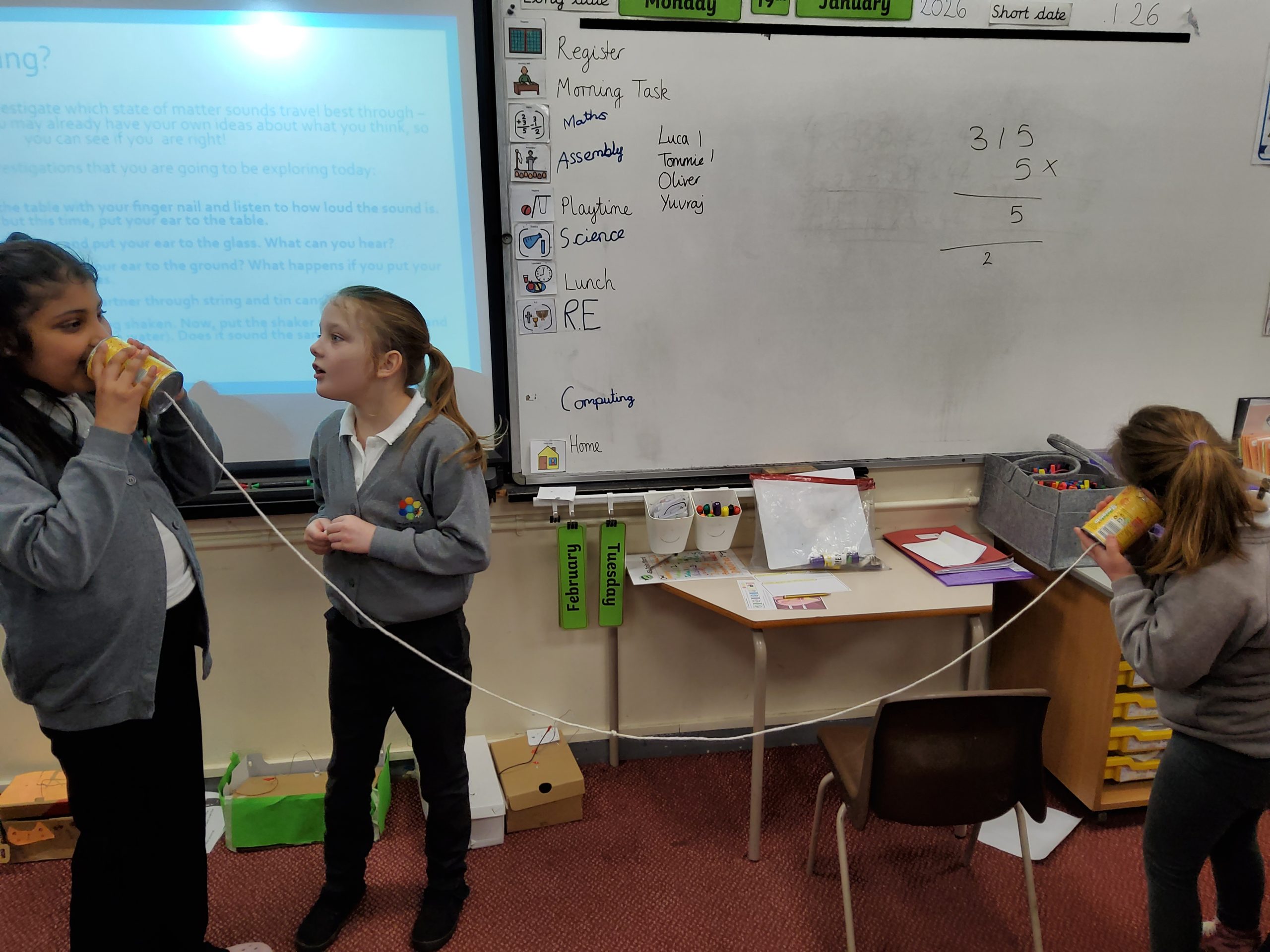 In science, we have been carrying out a range of investigations to find out how sound travels through different materials.