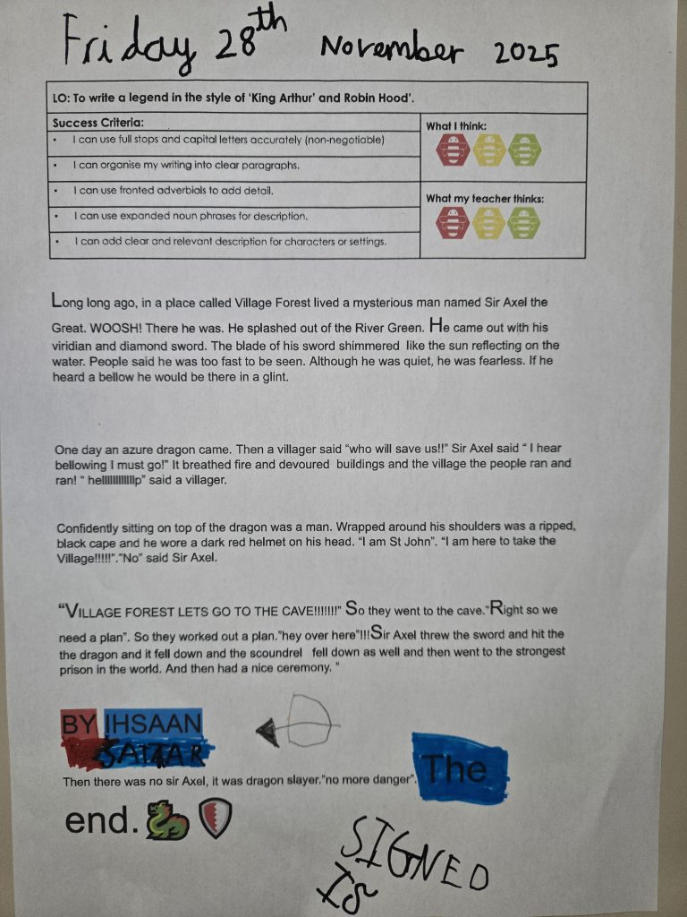 In English, we finished writing and editing our legends. It has been fantastic seeing the children writing so enthusiastically and taking pride in their work, trying to include all of the story features that we have been practising. Well done everyone!
