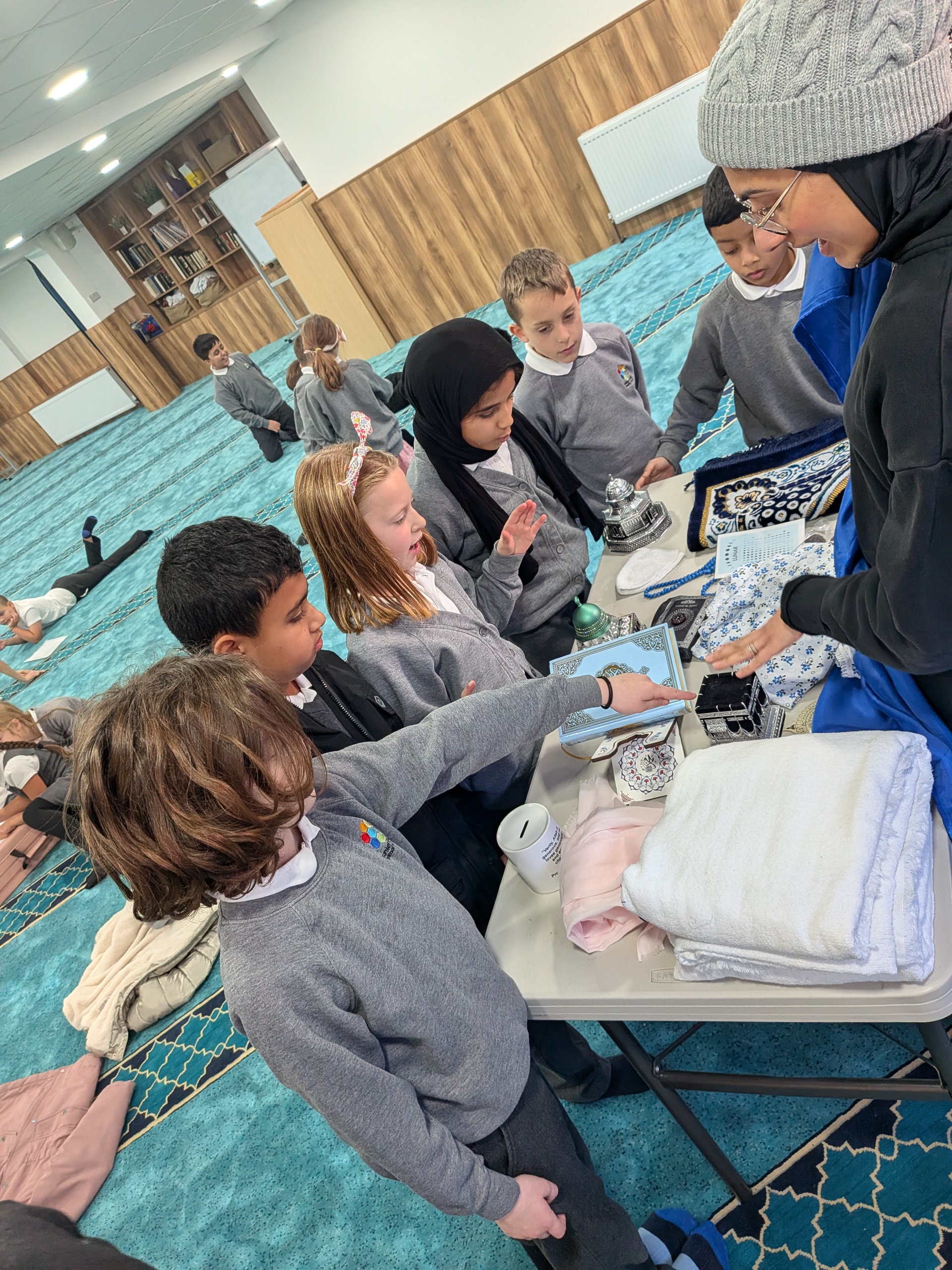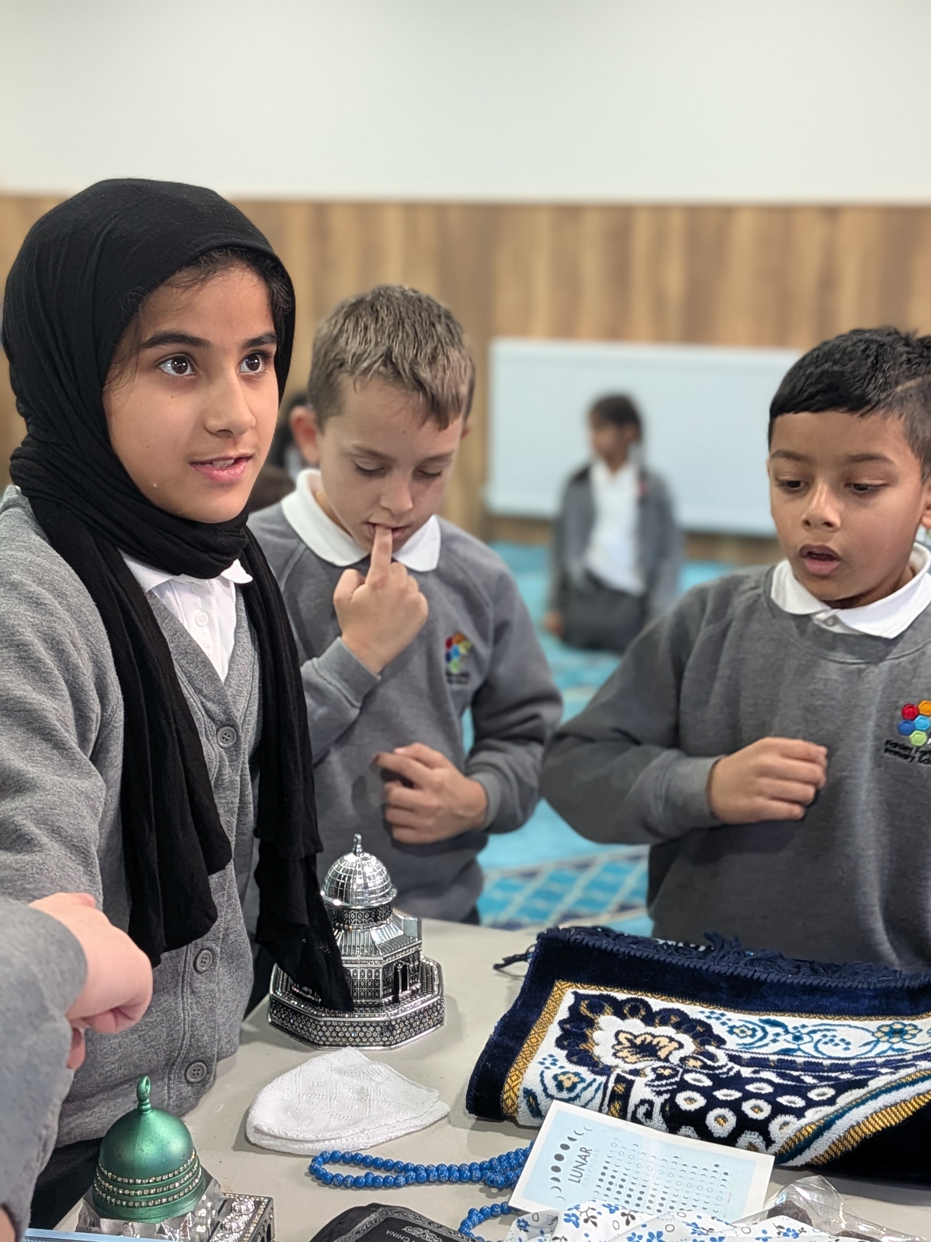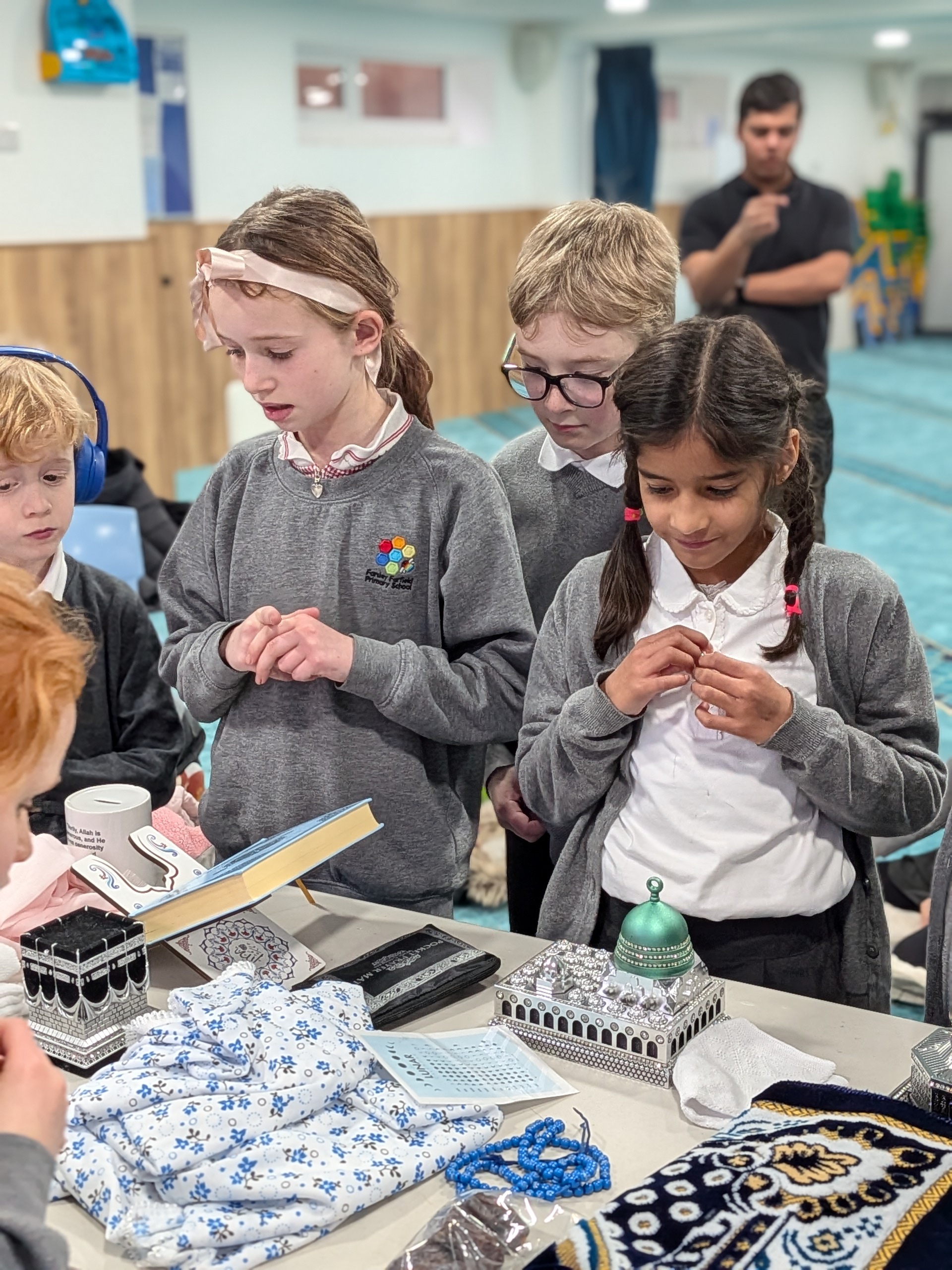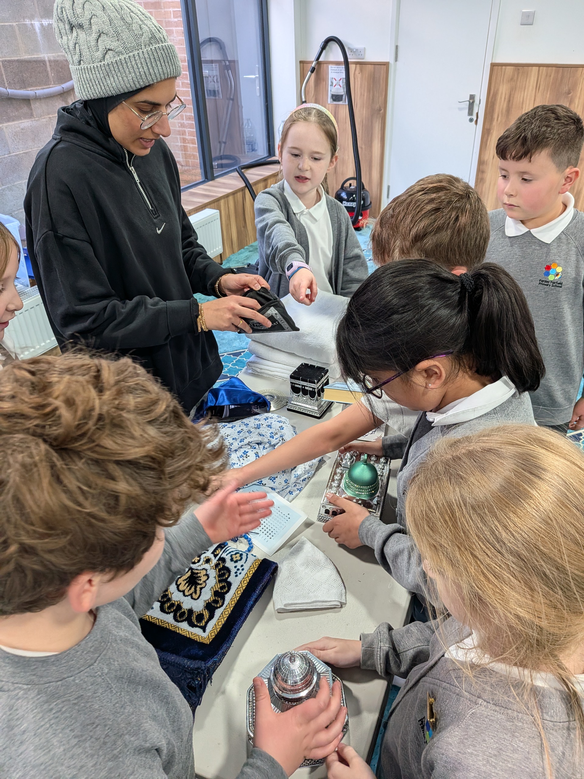 This week Year 4 had two very successful visits to Lincoln Green Mosque. Both classes behaved brilliantly and did a super job of representing Farfield. The volunteers who ran the activities were very impressed with the knowledge of our children and with their thoughtful questions. At the mosque, we completed a treasure hunt and played an observation game to learn more about the features of mosques and some important Islamic artefacts.  We listened to the call to prayer and observed the congregational prayers. We also watched a demonstration of the ritual of Wudu.