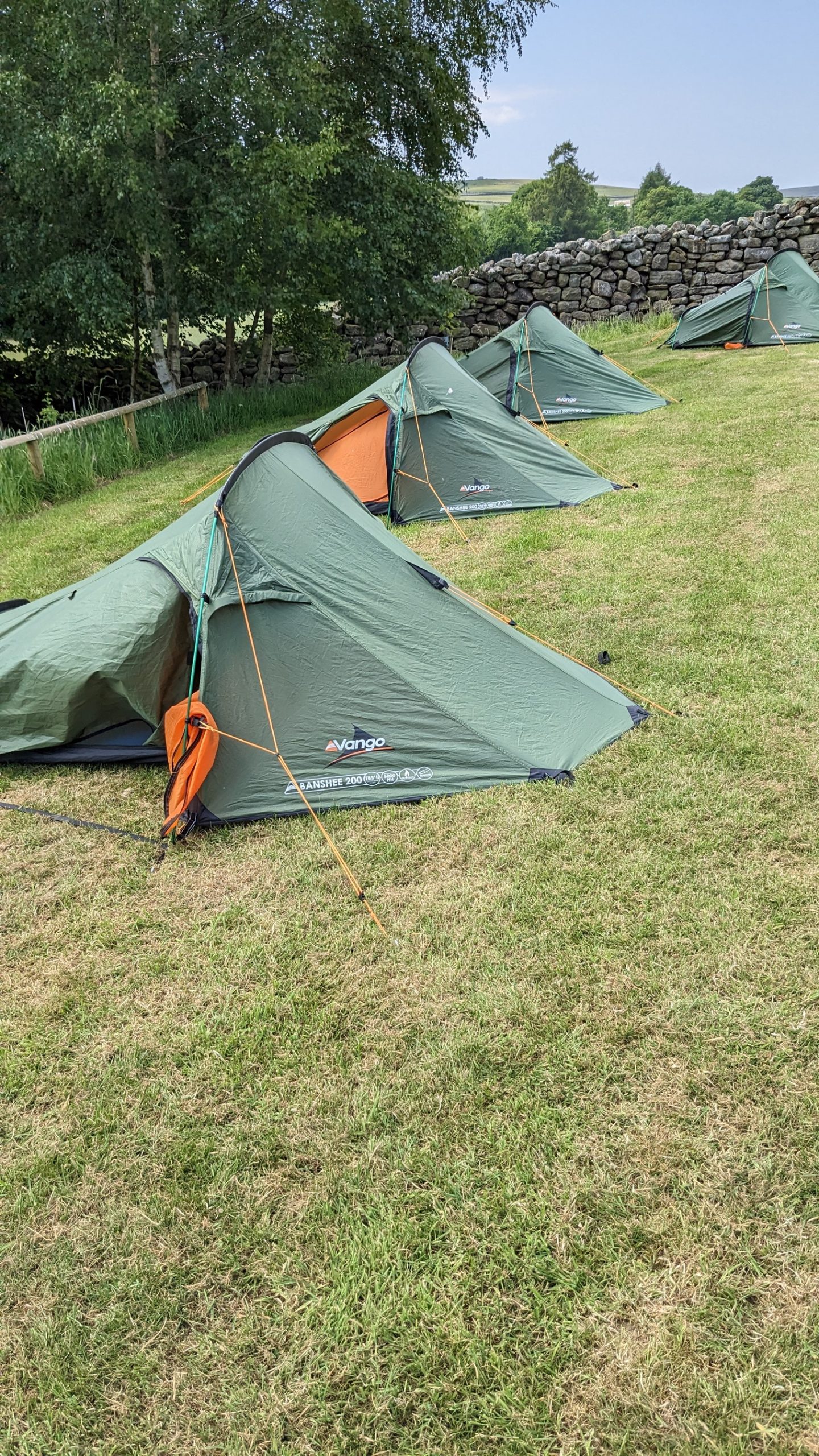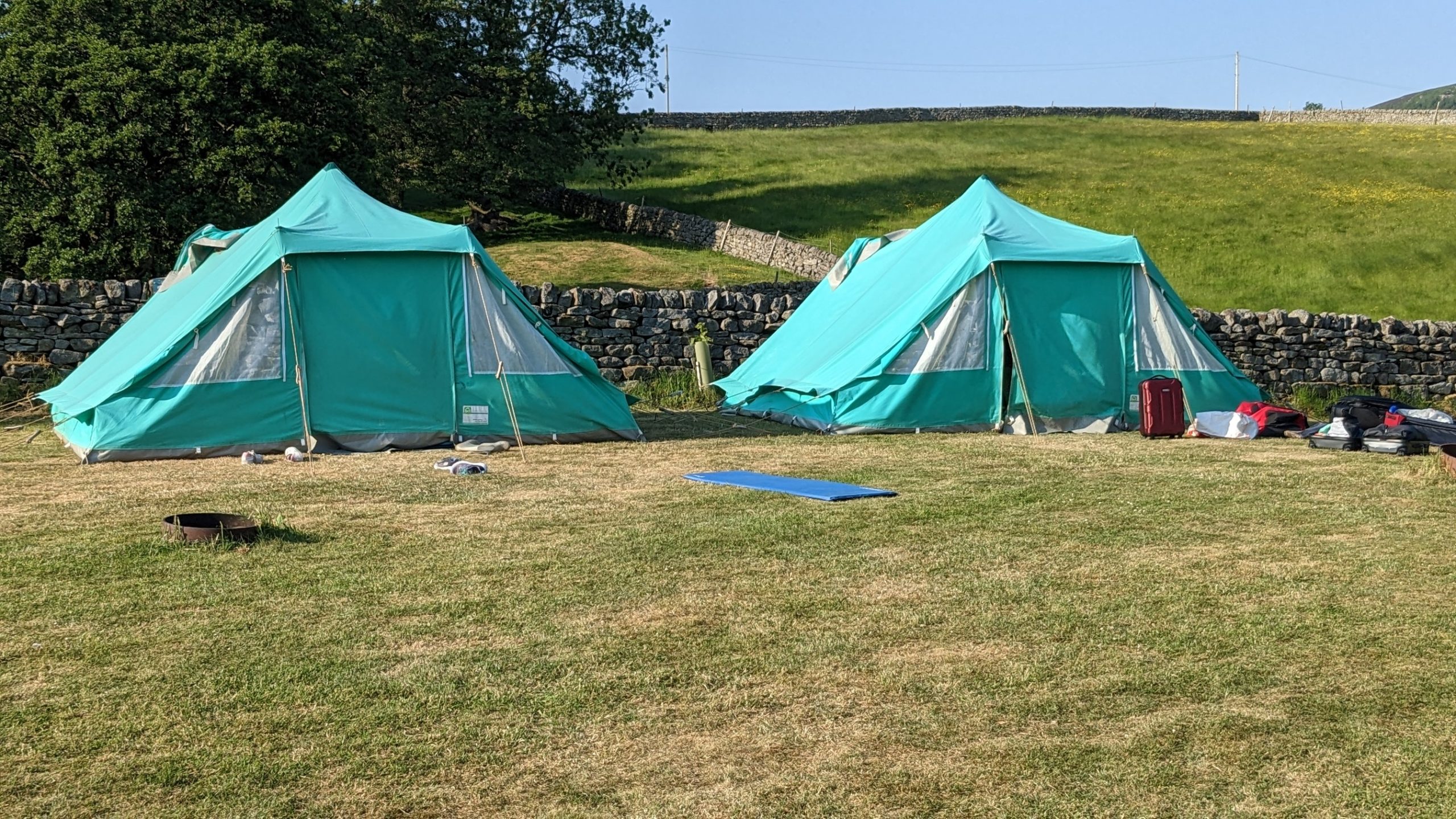 We arrived at glorious How Stean Gorge and saw our tents. The children (left) and Mr Harris (right) were perfectly happy with their tents. Our female staff, for some reason, were not happy.